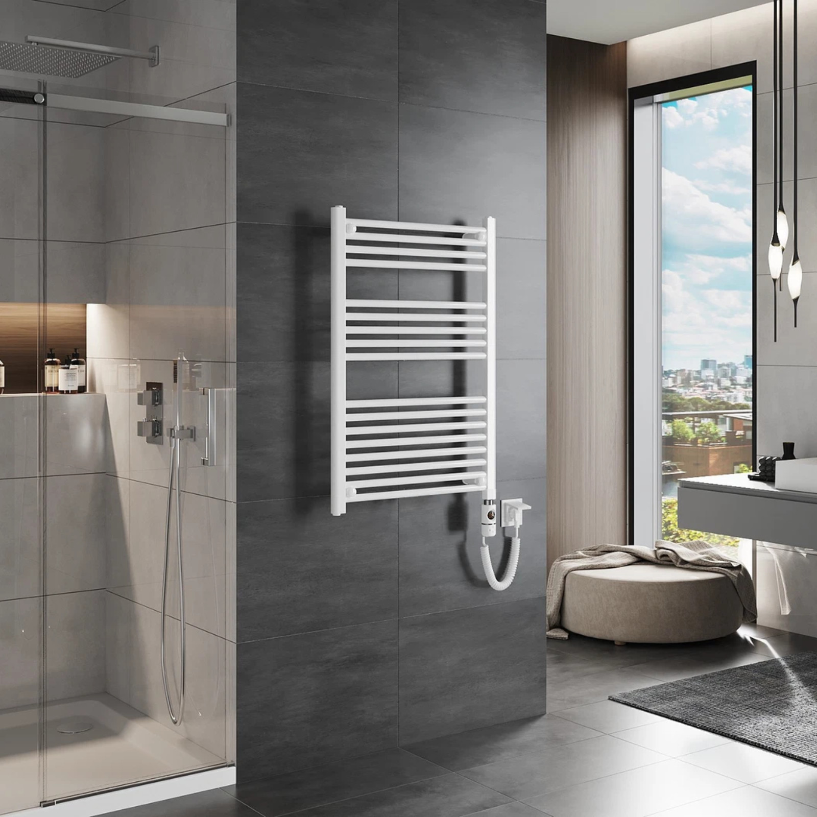 - Fényes fehér egyenes radiátor
