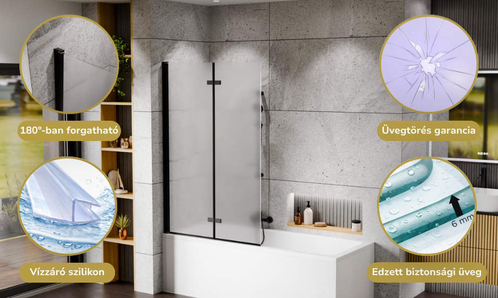 Ezen kiegészítő elemeket ötvözve az átlátszó biztonsági üveggel egy káprázatos terméket kapunk. Nagy fokú tartósság jellemzi, amivel biztosítja hosszútávon a gondtalan használatot az Ön és családja számára. Mélyen hiszünk benne, hogy ezzel a kádparavánnal hozzájárulhatunk a reggeli vagy akár a nap végi felfrissüléshez.