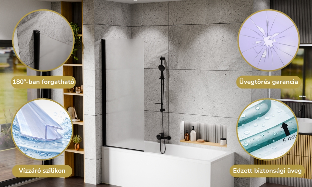 Ezen kiegészítő elemeket ötvözve az átlátszó biztonsági üveggel egy káprázatos terméket kapunk. Nagy fokú tartósság jellemzi, amivel biztosítja hosszútávon a gondtalan használatot az Ön és családja számára. Mélyen hiszünk benne, hogy ezzel a kádparavánnal hozzájárulhatunk a reggeli vagy akár a nap végi felfrissüléshez.