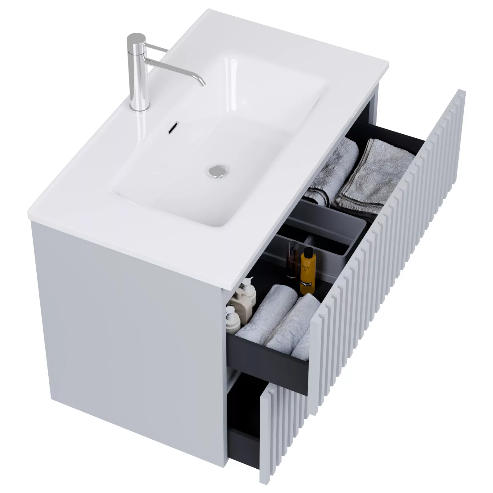 A fiókok bástyás kialakításának köszönhetően teljesen új szintre emeli a a fürdűszobáját, megteremtve a modern és kifinomult megjelenést.