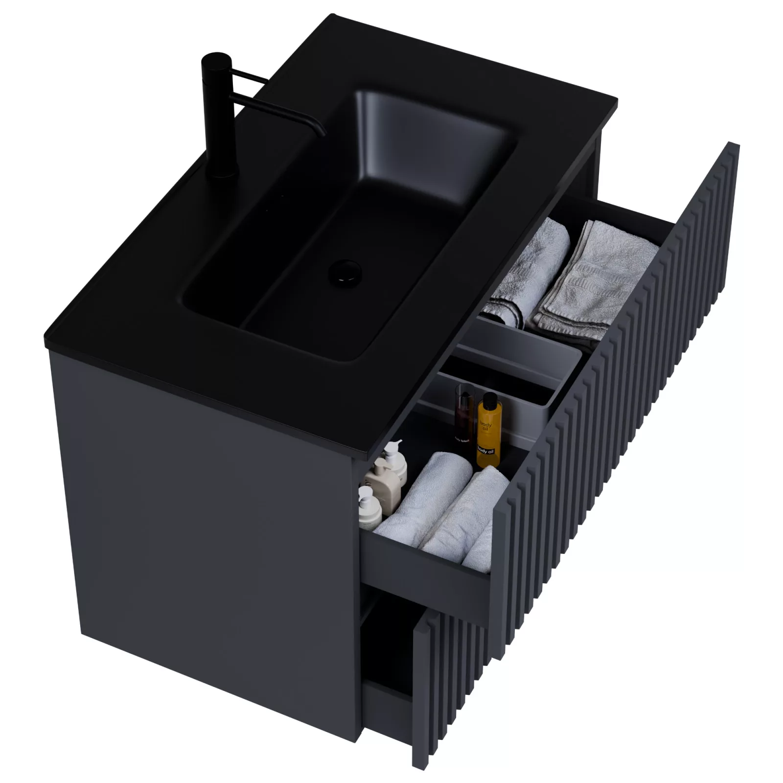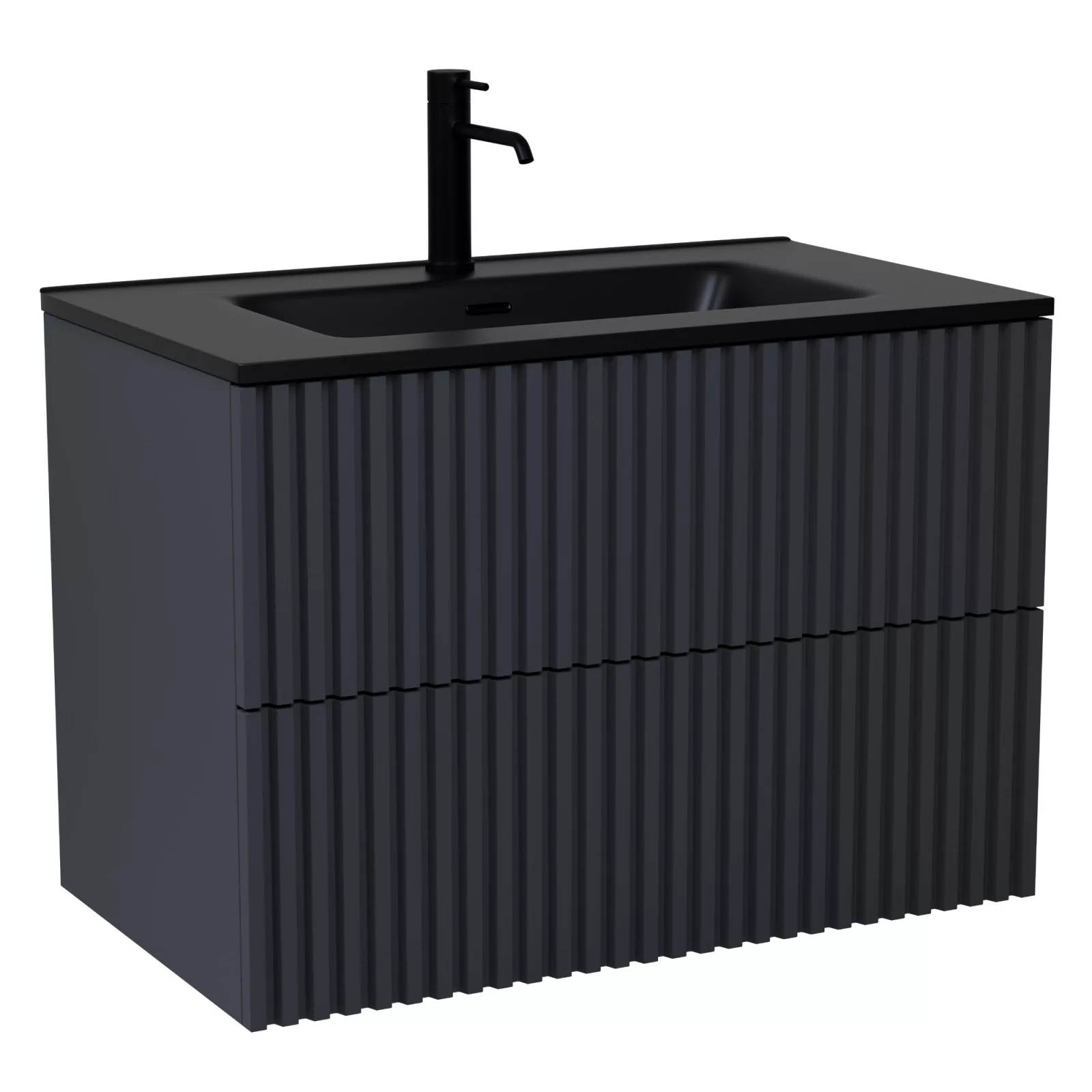 HD Ravello Pro Matt Antracit 60 fali mosdószekrény, push-to-open mechanizmussal, matt fekete slim mosdóval
