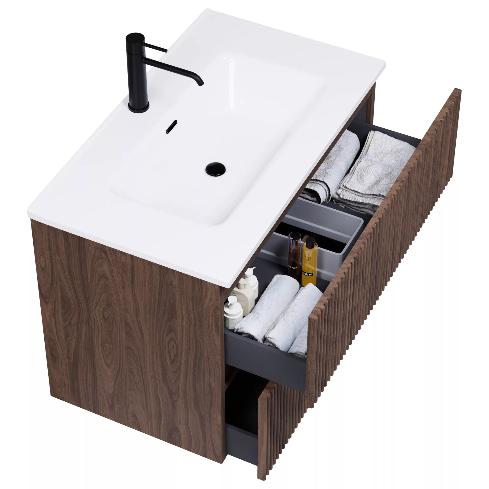 A fiókok bástyás kialakításának köszönhetően teljesen új szintre emeli a a fürdűszobáját, megteremtve a modern és kifinomult megjelenést.