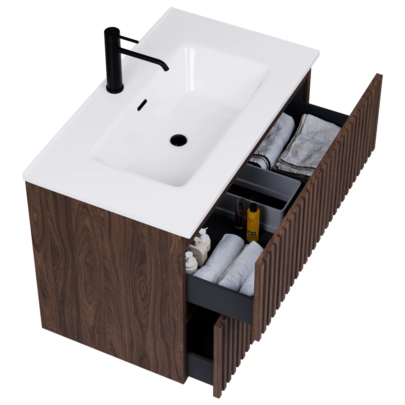 A fiókok bástyás kialakításának köszönhetően teljesen új szintre emeli a a fürdűszobáját, megteremtve a modern és kifinomult megjelenést.