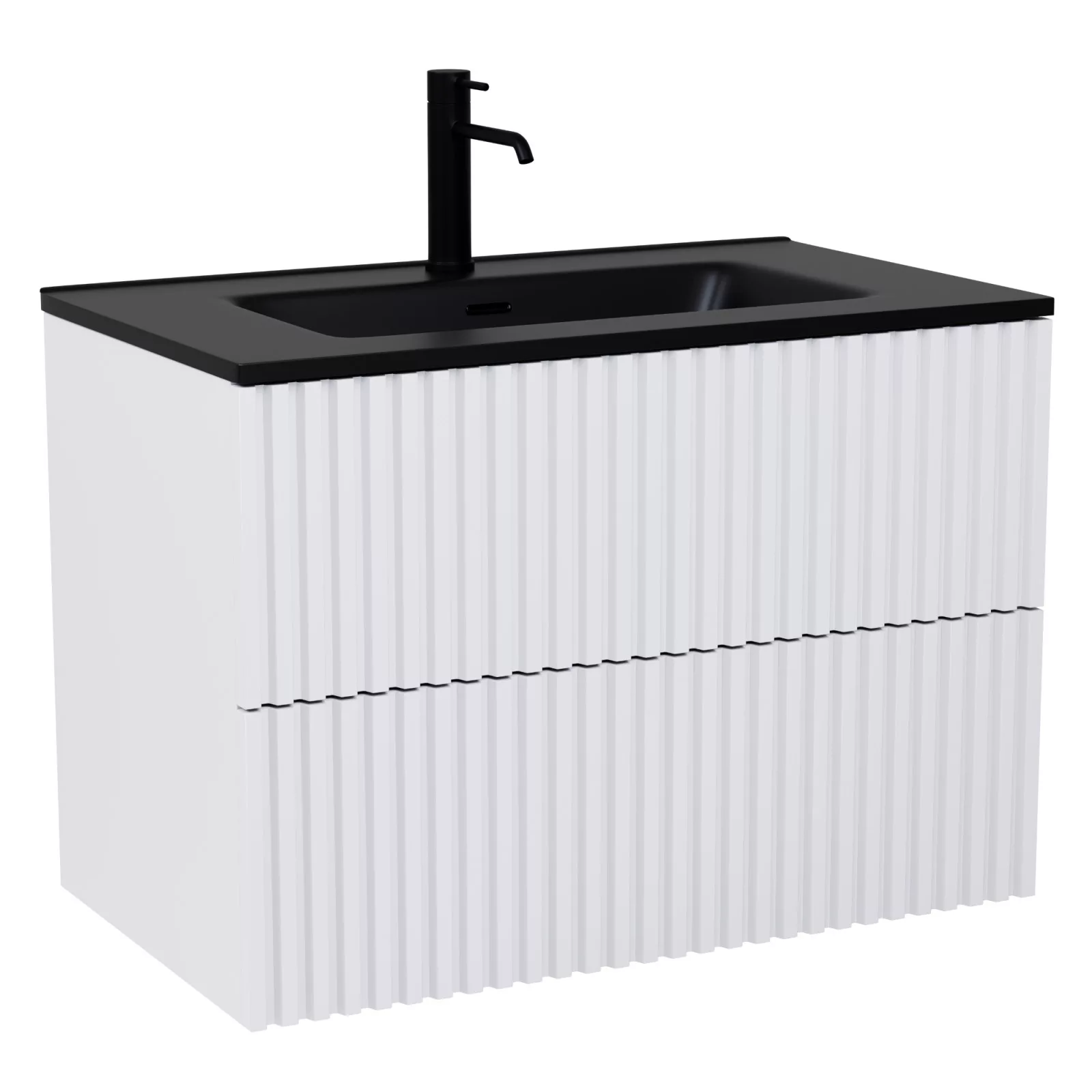 HD Ravello Pro Matt White 60 fali mosdószekrény, push-to-open mechanizmussal, matt fekete slim mosdóval