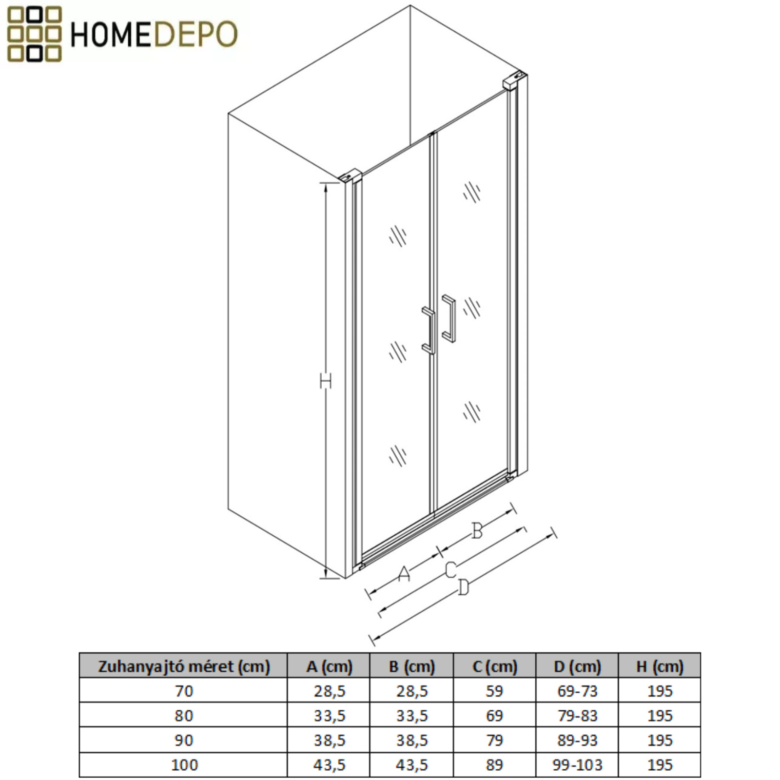 - A zuhanyajtó elemei: Polírozott állítható króm alimínium profilok, prémium forgó profil emelő szerkezet, krómozott rozsdamentes acél ajtónyitó, vízzáró szilikon profilok, krómozott alumínium küszöb, mágneses ajtózár