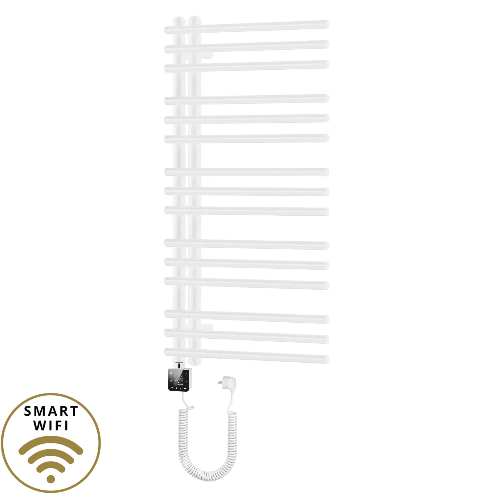 HD Triton White 1000x600 mm smart elektromos design törölközőszárító radiátor 400W-os wifi-s fűtőpatronnal, fényes fehér