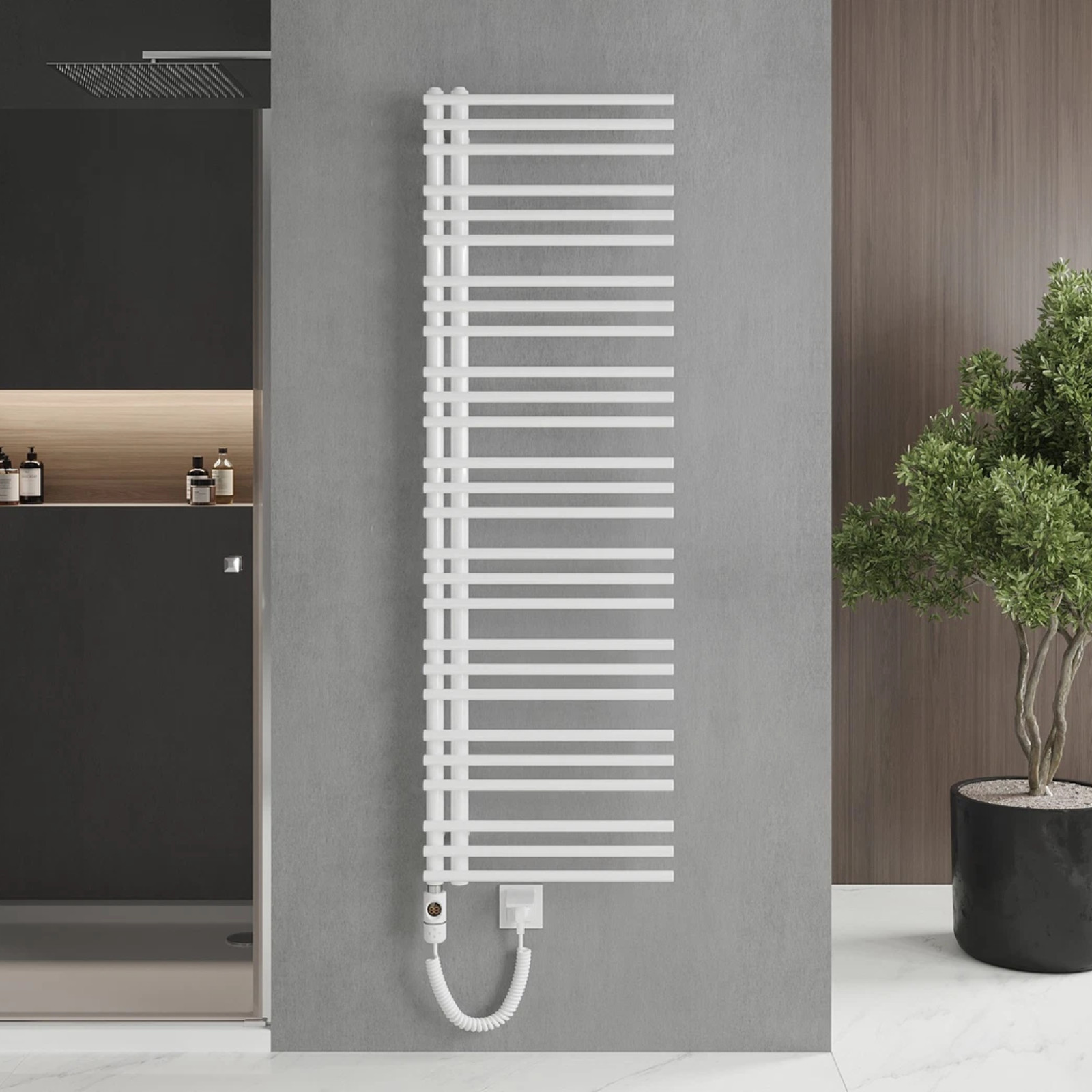 HD Triton White 1600x600 mm elektromos design törölközőszárító radiátor 900W-os fűtőpatronnal, fényes fehér