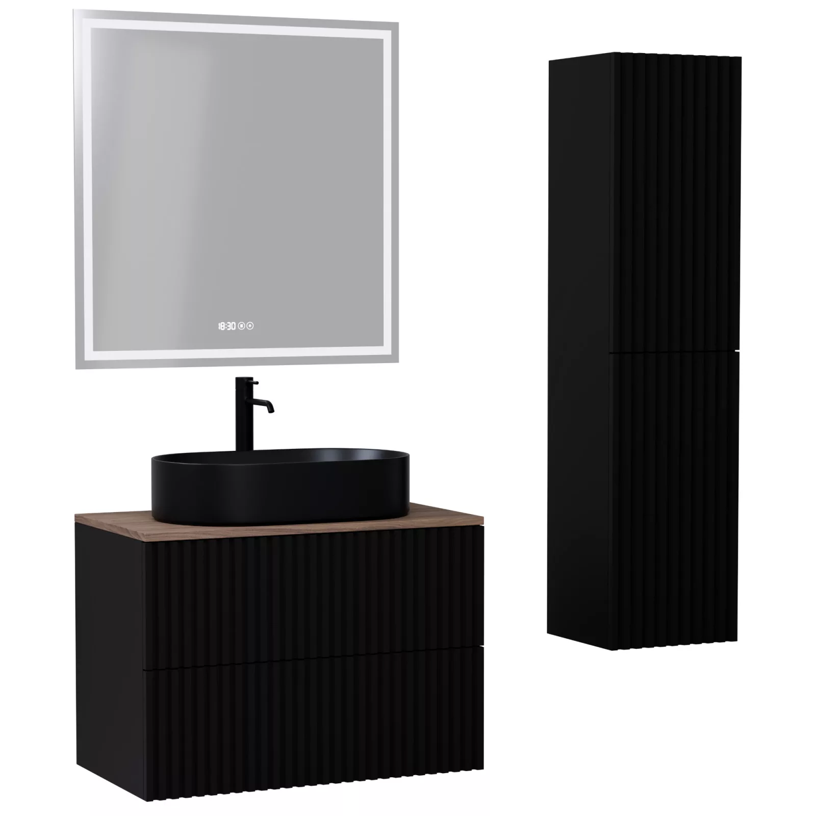 Rapallo Matt Black 60 komplett fürdőszoba bútor szett