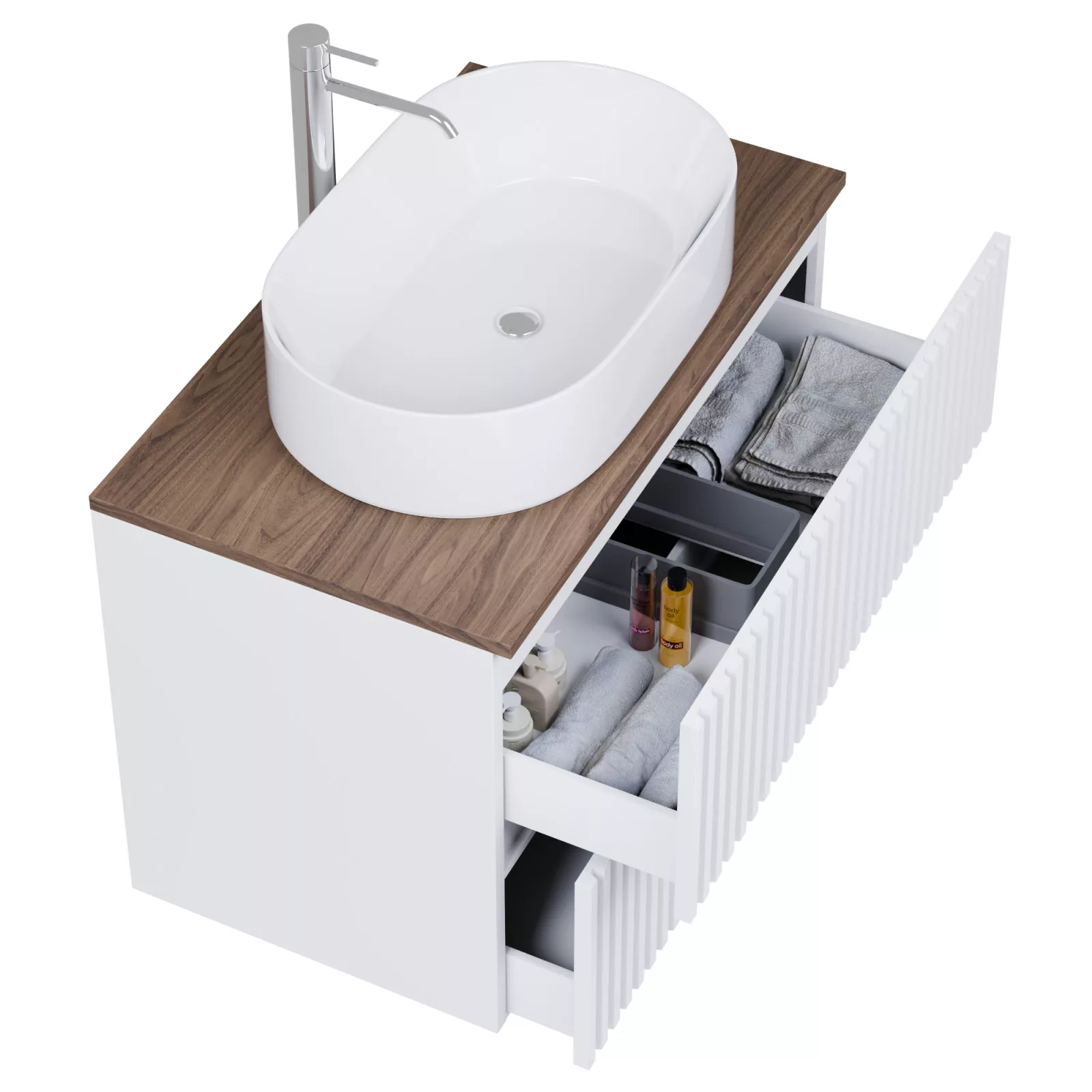 A fiókok bástyás kialakításának köszönhetően teljesen új szintre emeli a a fürdűszobáját, megteremtve a modern és kifinomult megjelenést.