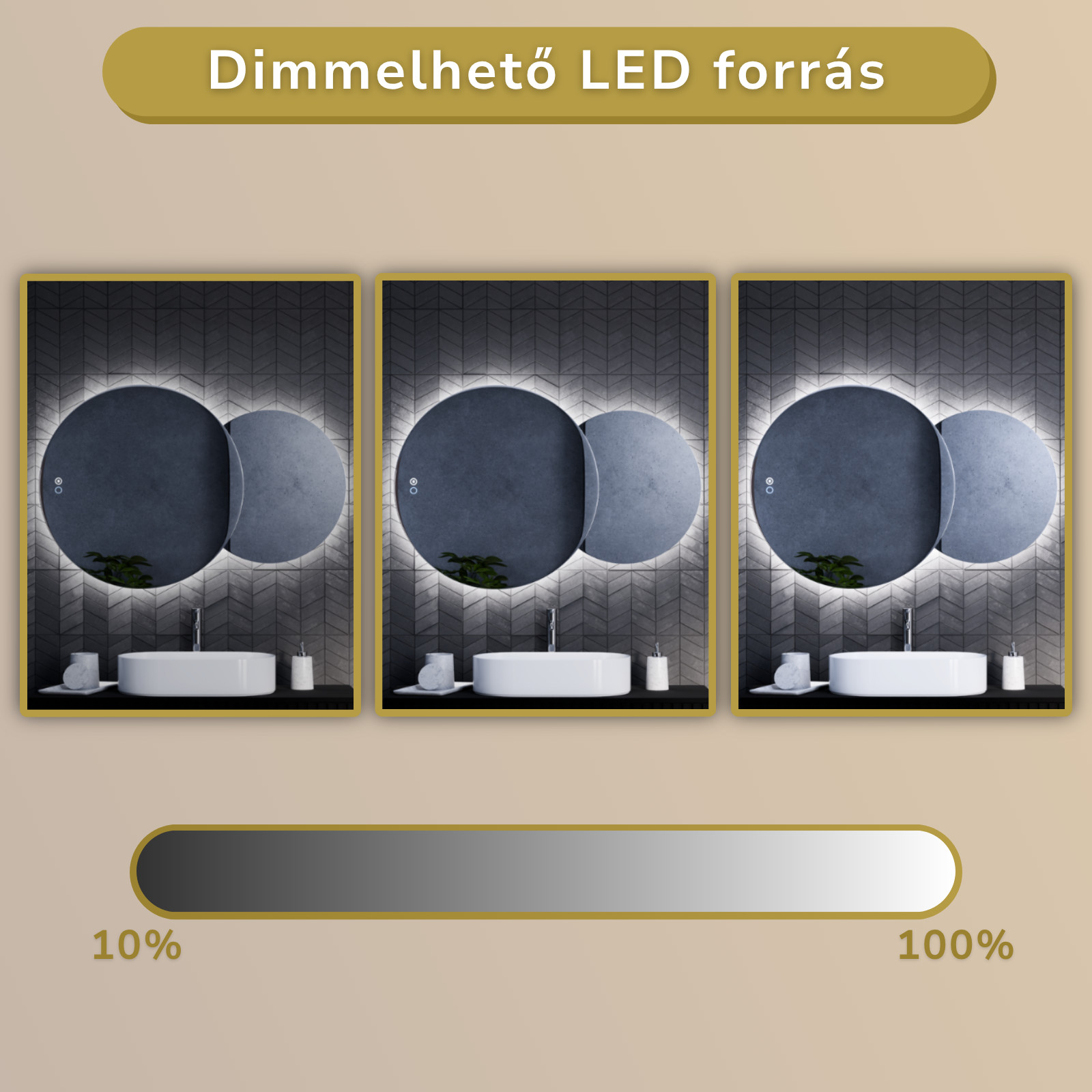 A tükör LED világítással rendelkezik, amely 3 féle színhőmérsékletet biztosít: meleg, semleges és hideg fehér.