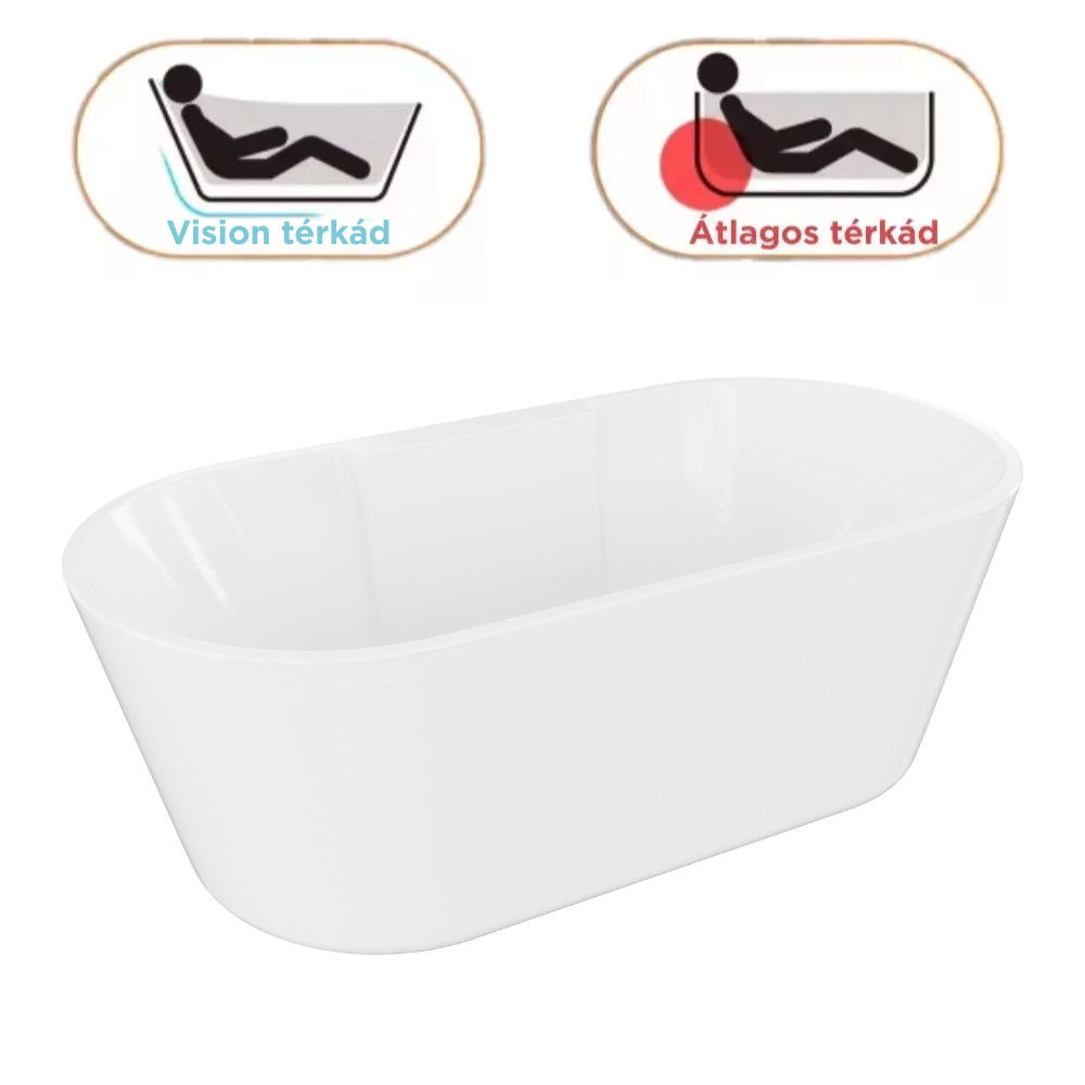 Az ergonomikus kialakításnak köszönhetően a térben álló kád igyekszik biztosítani hosszú távon is a benne fekvő személy kényelmét, így hozzájárulva az egészség megőrzéséhez.