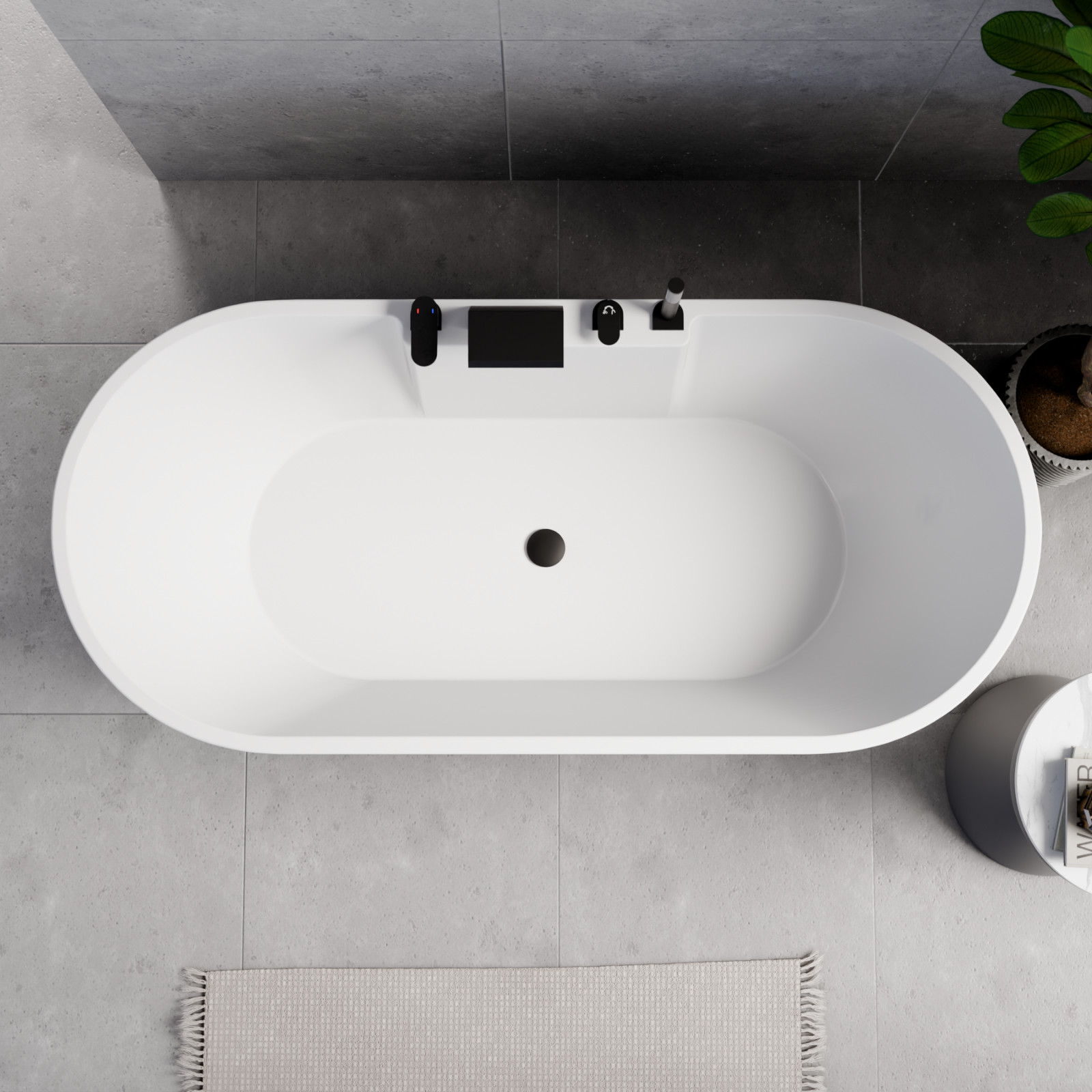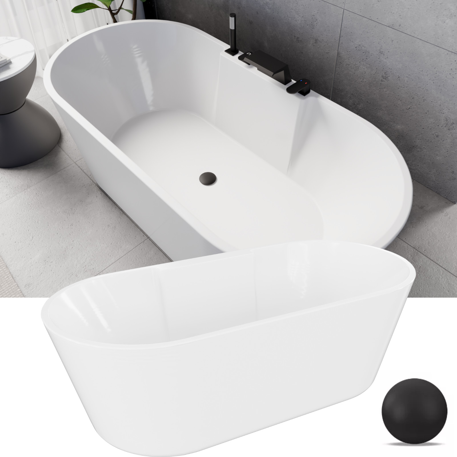 Vision ovális térben álló akril kád, 170 cm hosszú, matt fekete elemekkel
