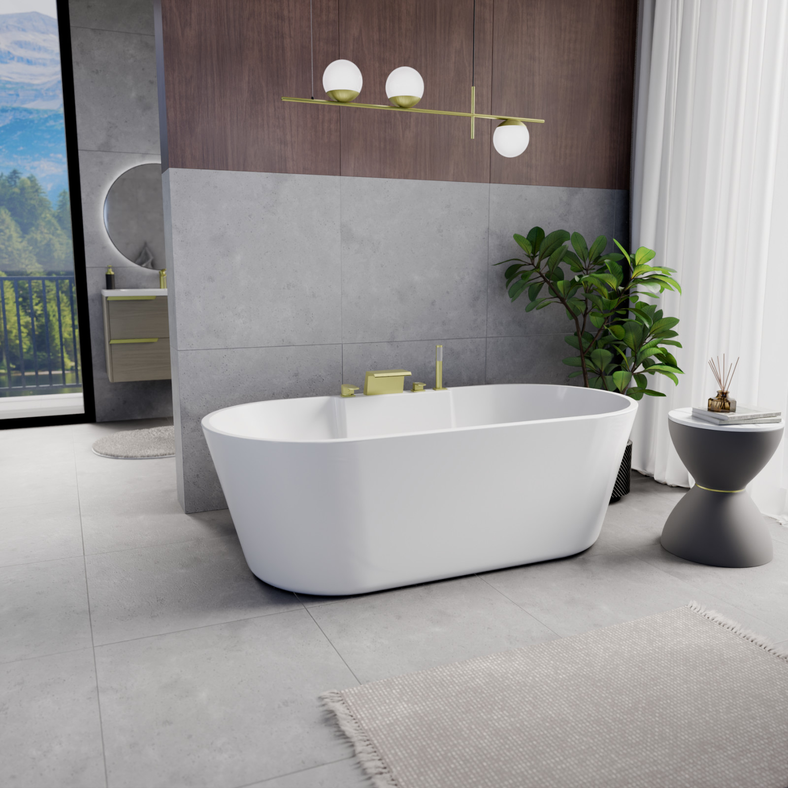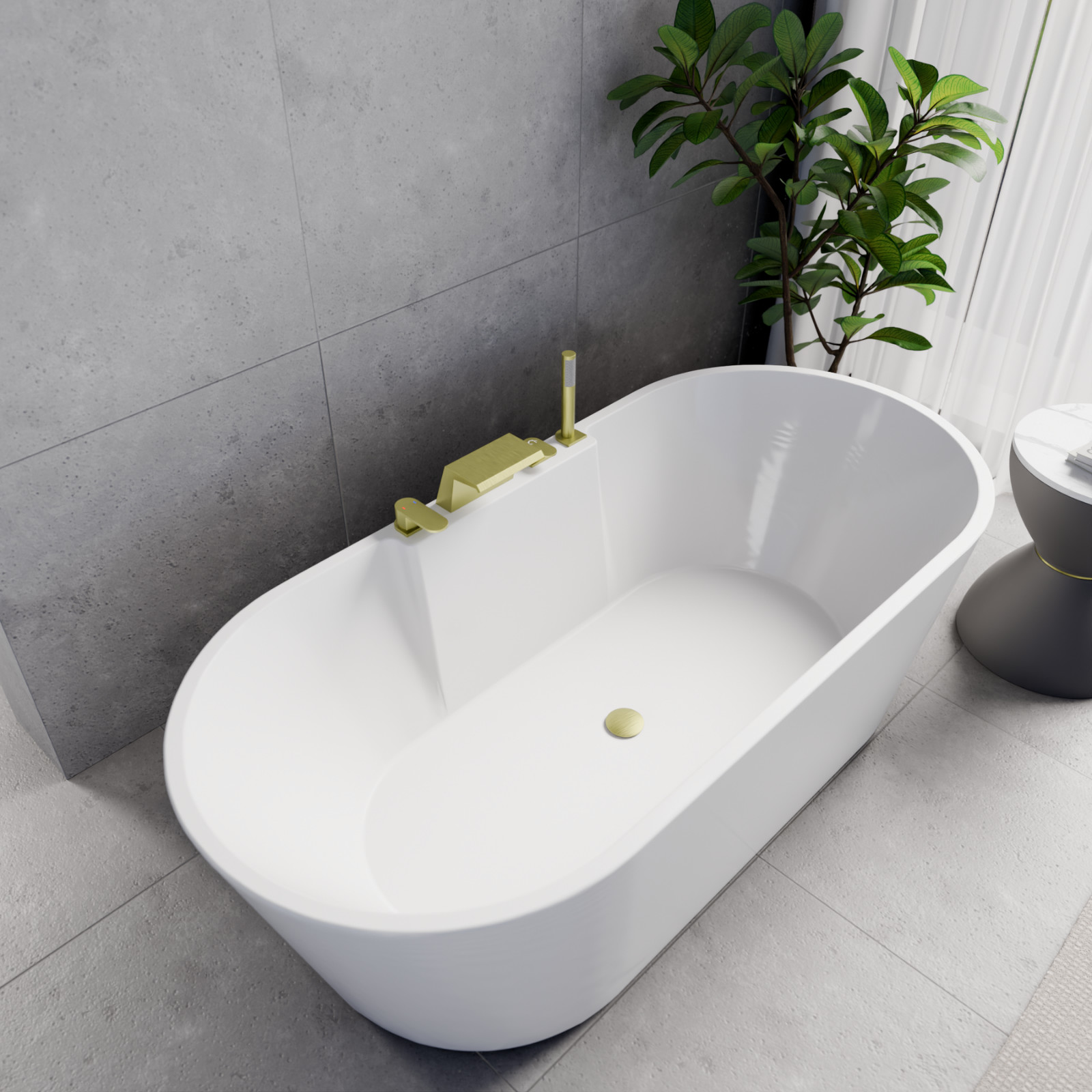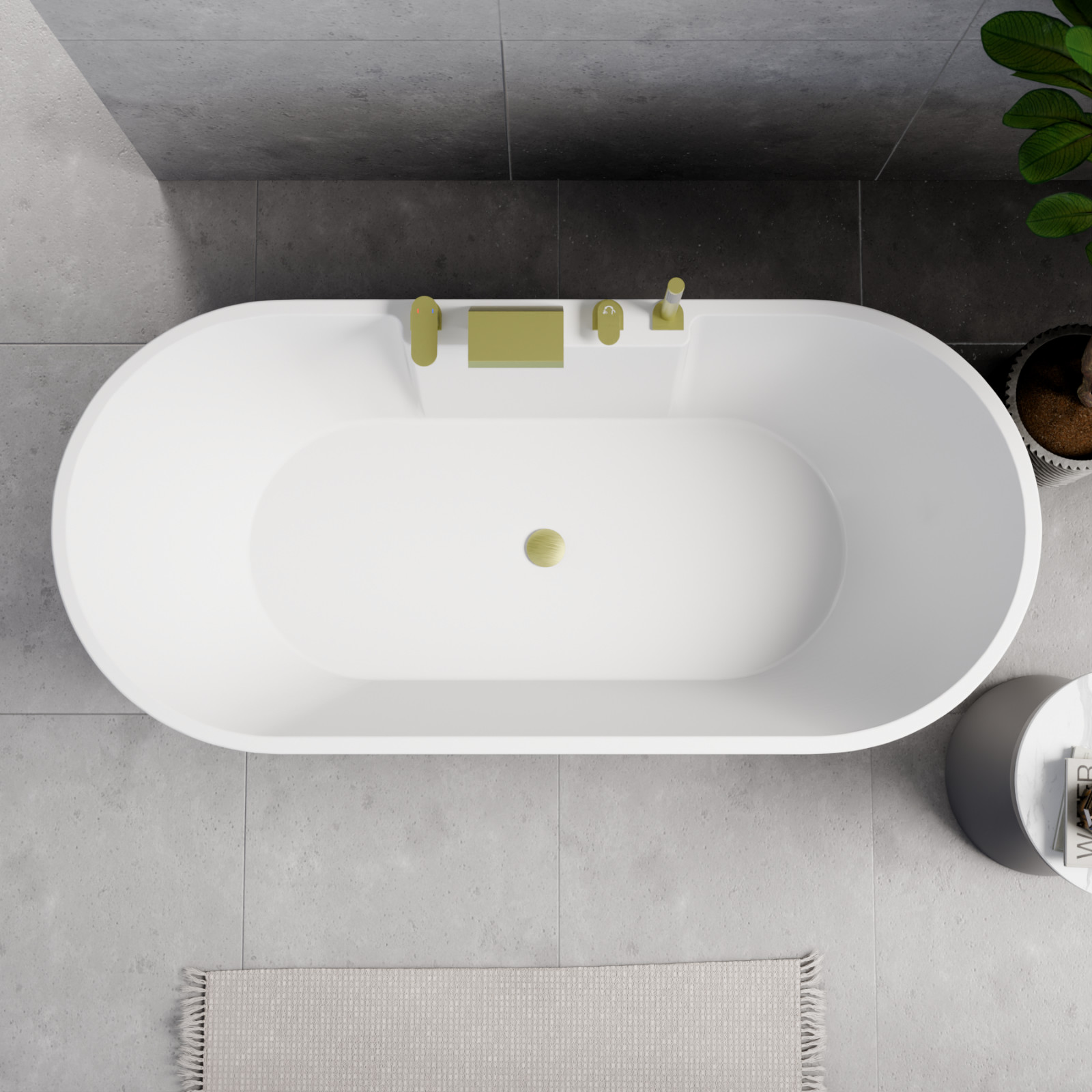 Vision ovális térben álló akril kád, 170 cm hosszú, szálcsiszolt arany elemekkel