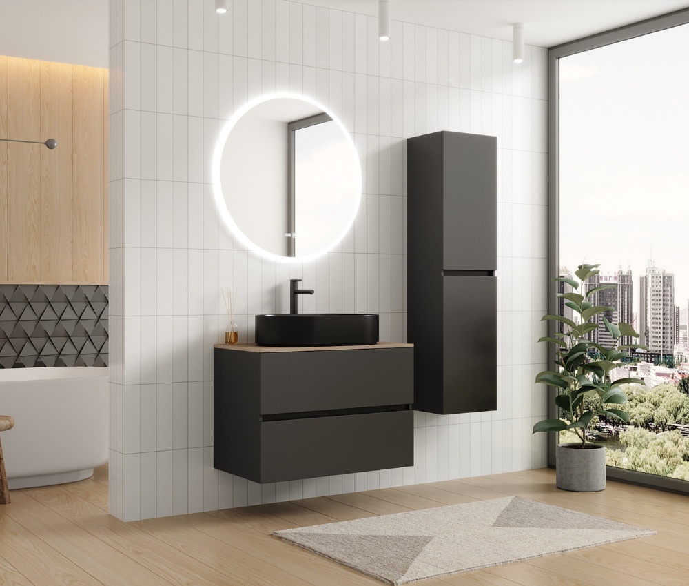HD Zyra Antracit 80 fali mosdószekrény oak mosdópulttal