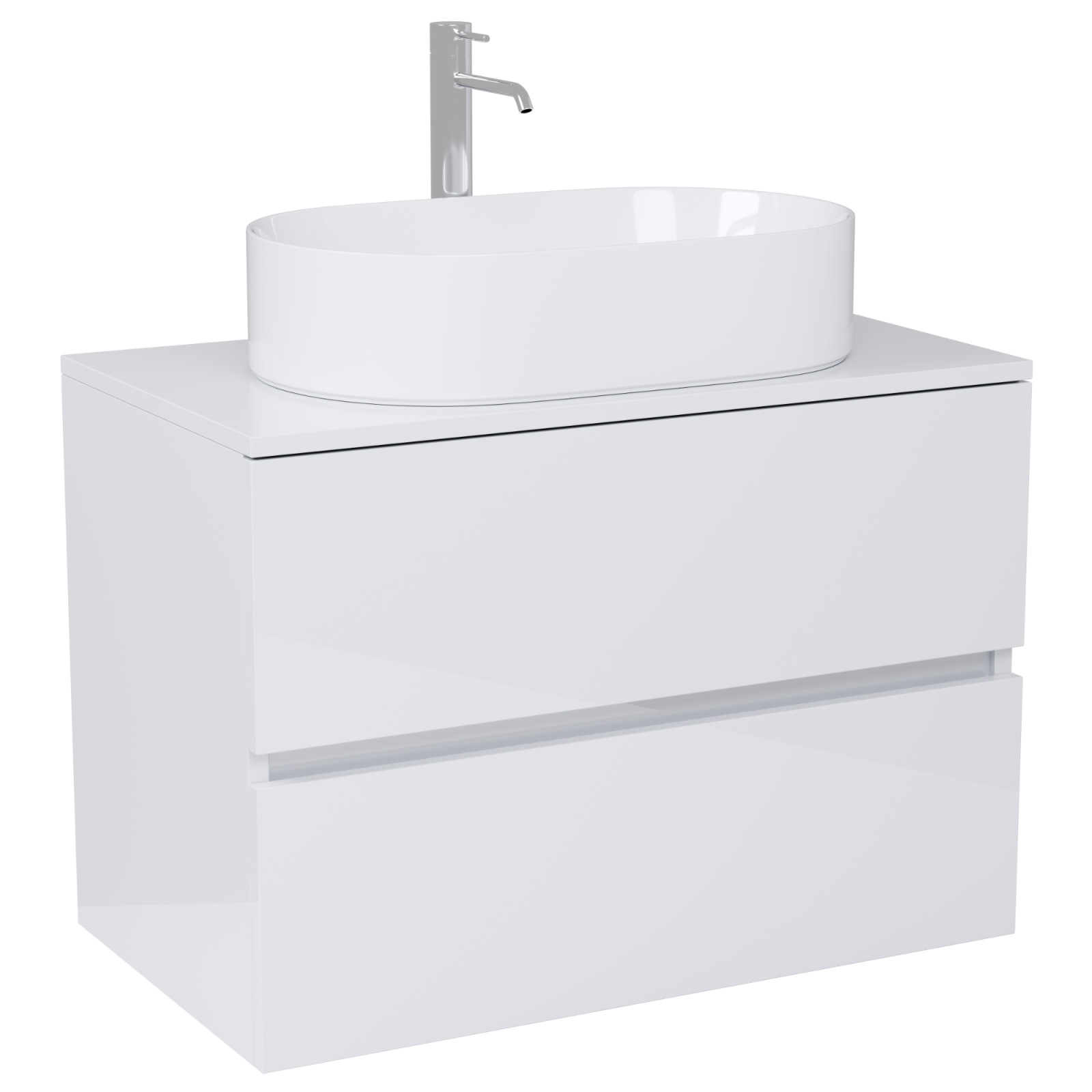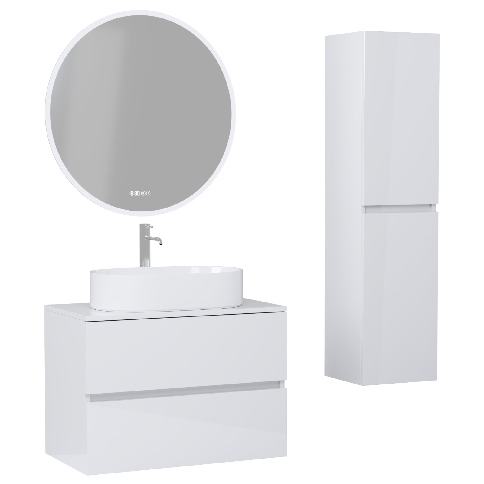 HD Zyra Lacquer White 80 komplett fürdőszoba bútor szett fali mosdószekrénnyel, fényes fehér mosdópulttal, tükörrel és magasszekrénnyel