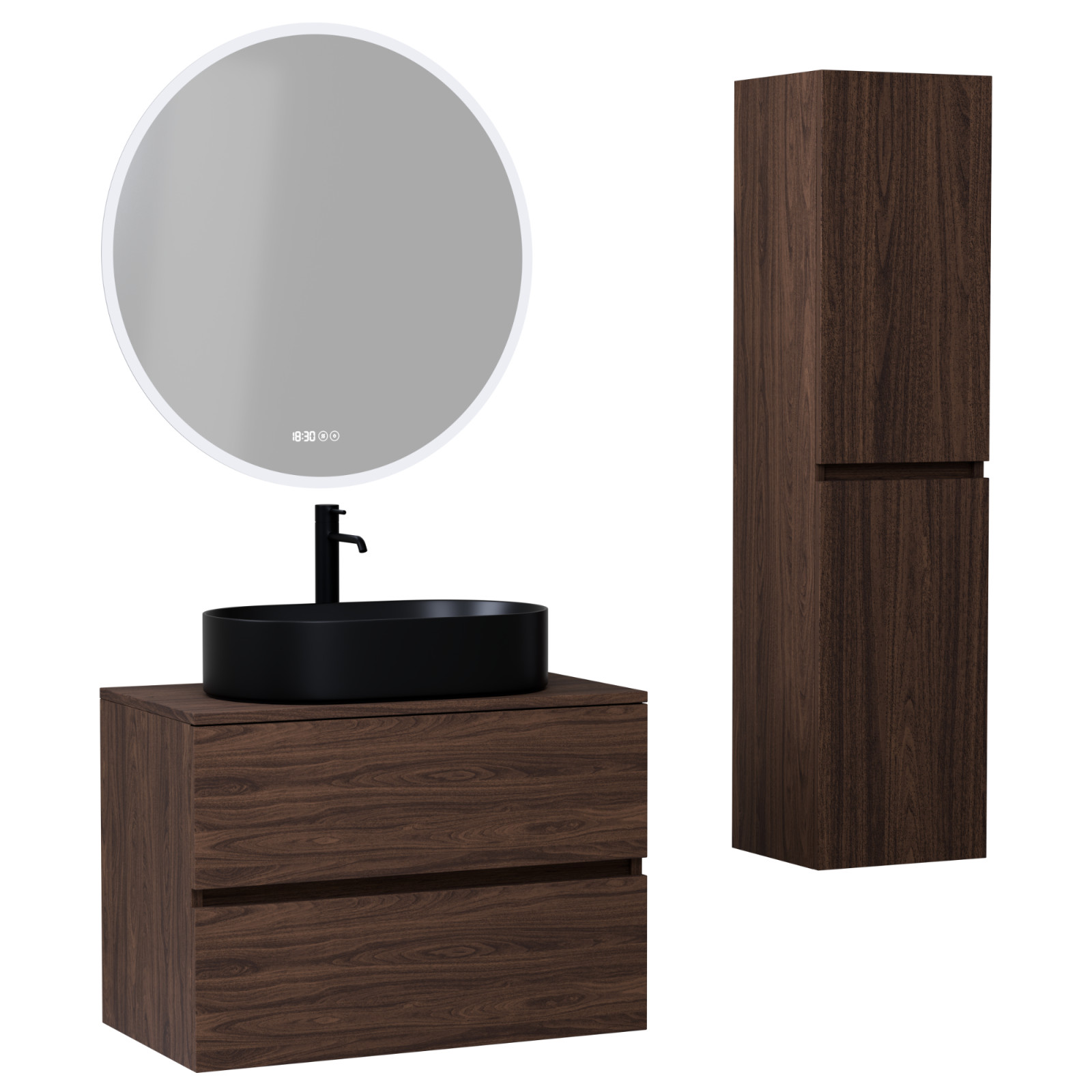 Mosdószekrény mosdópulttal (A mosdókagyló és a csaptelep nem tartozék!), okos tükör, magasszekrény