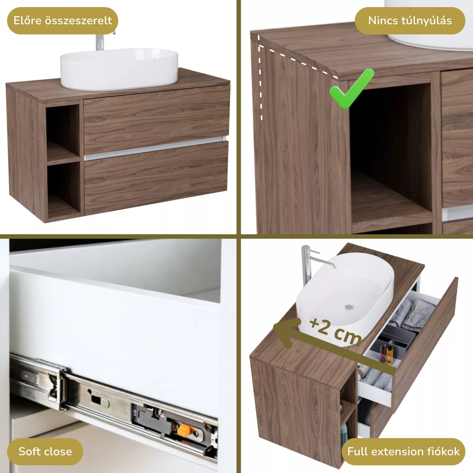 A bútort összeszerelve szállítjuk ki, így Önnek csak a mosdót és a fiók frontot kell ráhelyeznie!