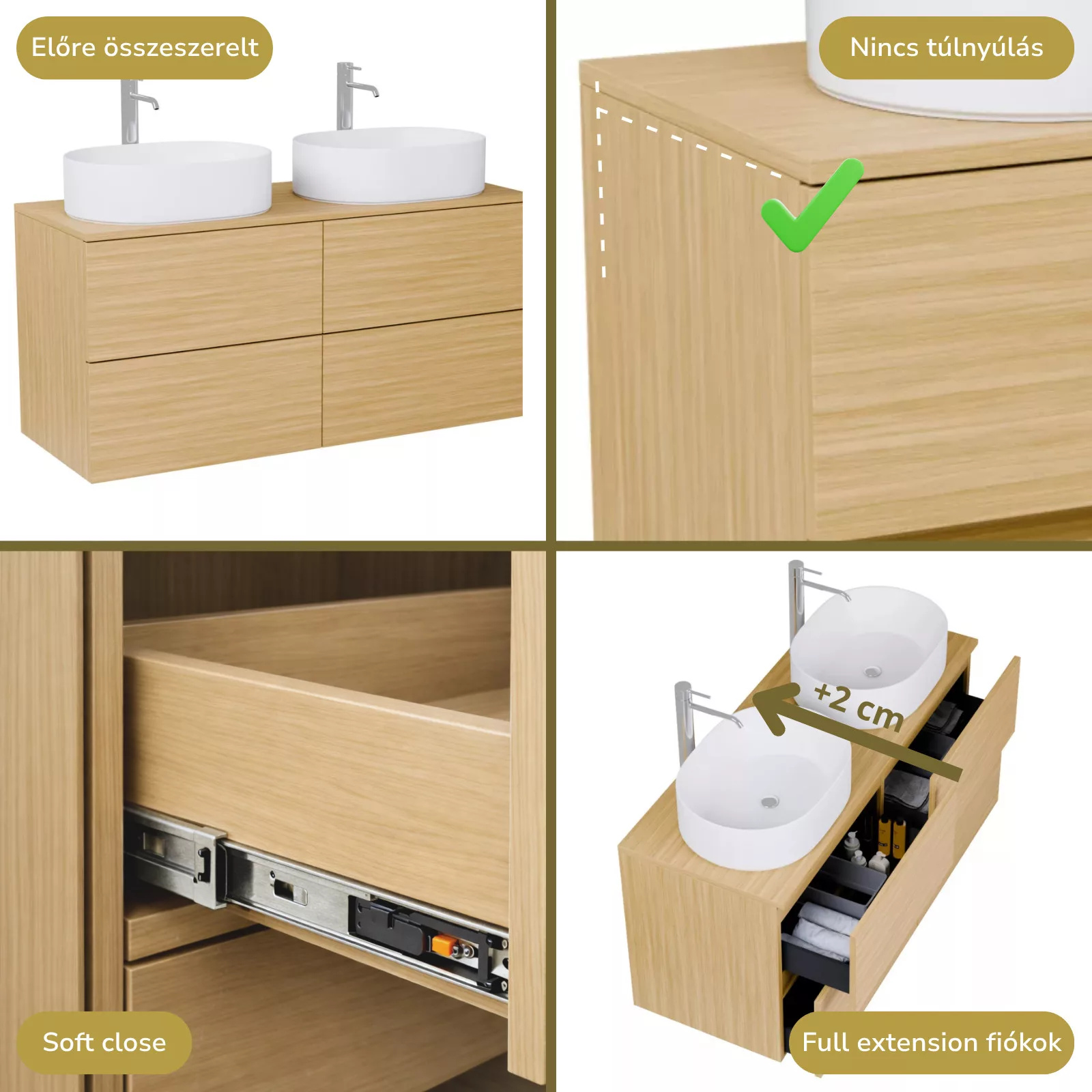 A bútor előre összerelt állapotban szállítjuk, így Önnek nincs más teendője már vele, csak fel kell rögzíteni a falra és fehelyezni a mosdót, illetve a fiók frontot.