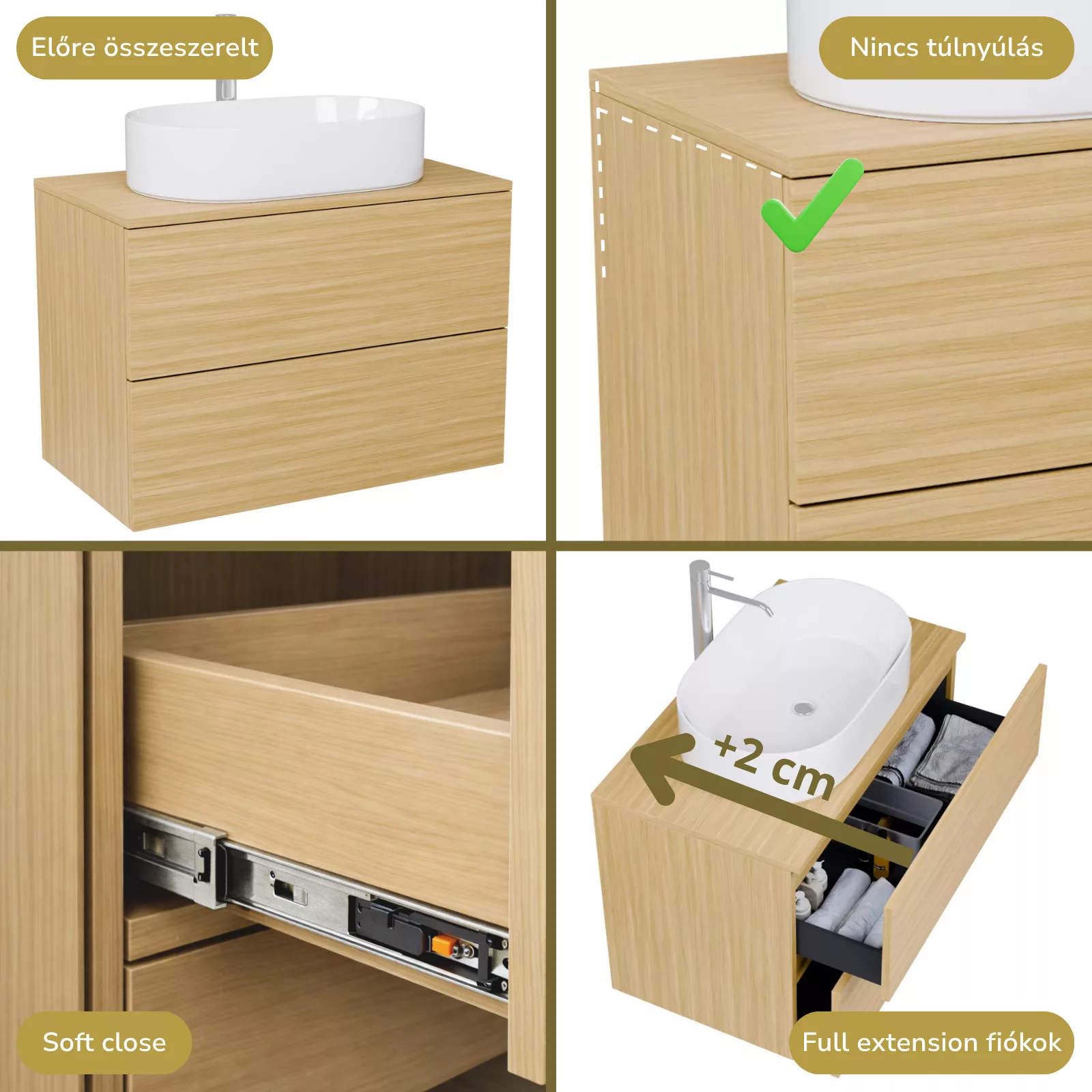 hikoridió színű mosdószekrény, teljes kihúzhatóságú fiókokkal