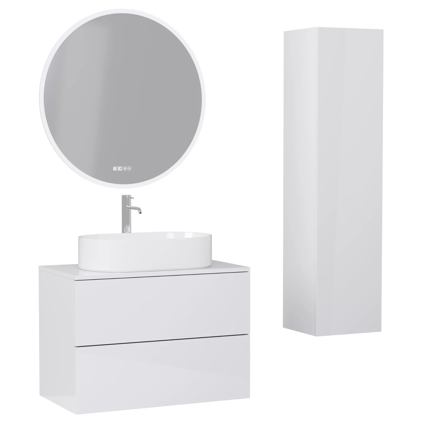 Bútor állapota: Összeszerelt Szett tartalma: Mosdószekrény mosdópulttal (A mosdókagyló és a csaptelep nem tartozék!), okos tükör, magasszekrény Mosdószekrény méret: 80x55x46 cm Mosdópult méret: 80x46x2 cm Tükör méret: 80x80 cm Magas szekrény méret: 35x140x30 cm Tükör funkciók: Digitális óra és páramentesítés A forrás bemeneti teljesítménye: 24 W Anyag: MDF Felszereltség: Ambient világítás, érintés kapcsoló, digitális óra, páramentesítő fűtés, integrált LED világítás Világítás színhőmérséklete: 3000K - 4500K - 6000K (meleg - melegfehér - hidegfehér) Tükör anyaga: Rézmentes ezüst tükör Szekrény felszereltsége: Fiókos Garancia: 2 év Kivetőpánt: Csillapítós (soft close) Tükör vastagság: 5 mm Az általunk legfontosabbnak vélt tulajdonságok A Zyra szekrénynél: