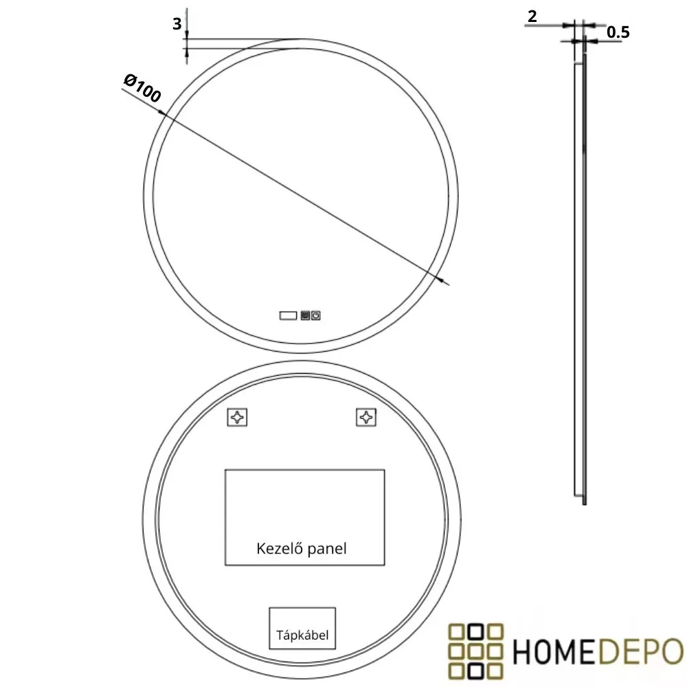 kerek LED okostükör