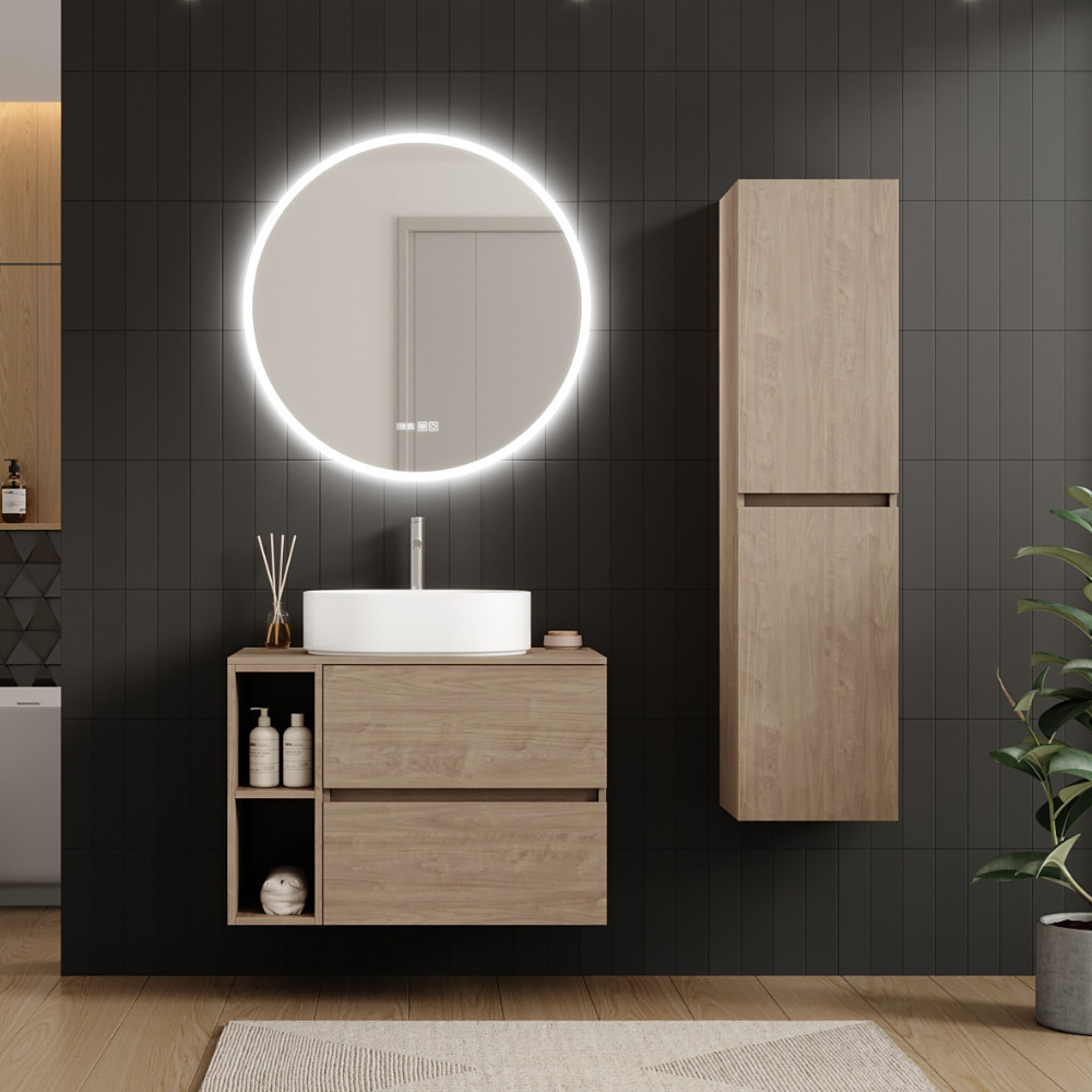 HD Zyra Pro+ Oak 80 fali mosdószekrény, push-to-open mechanizmussal, oak mosdópulttal és kiegészítő oak fali modullal