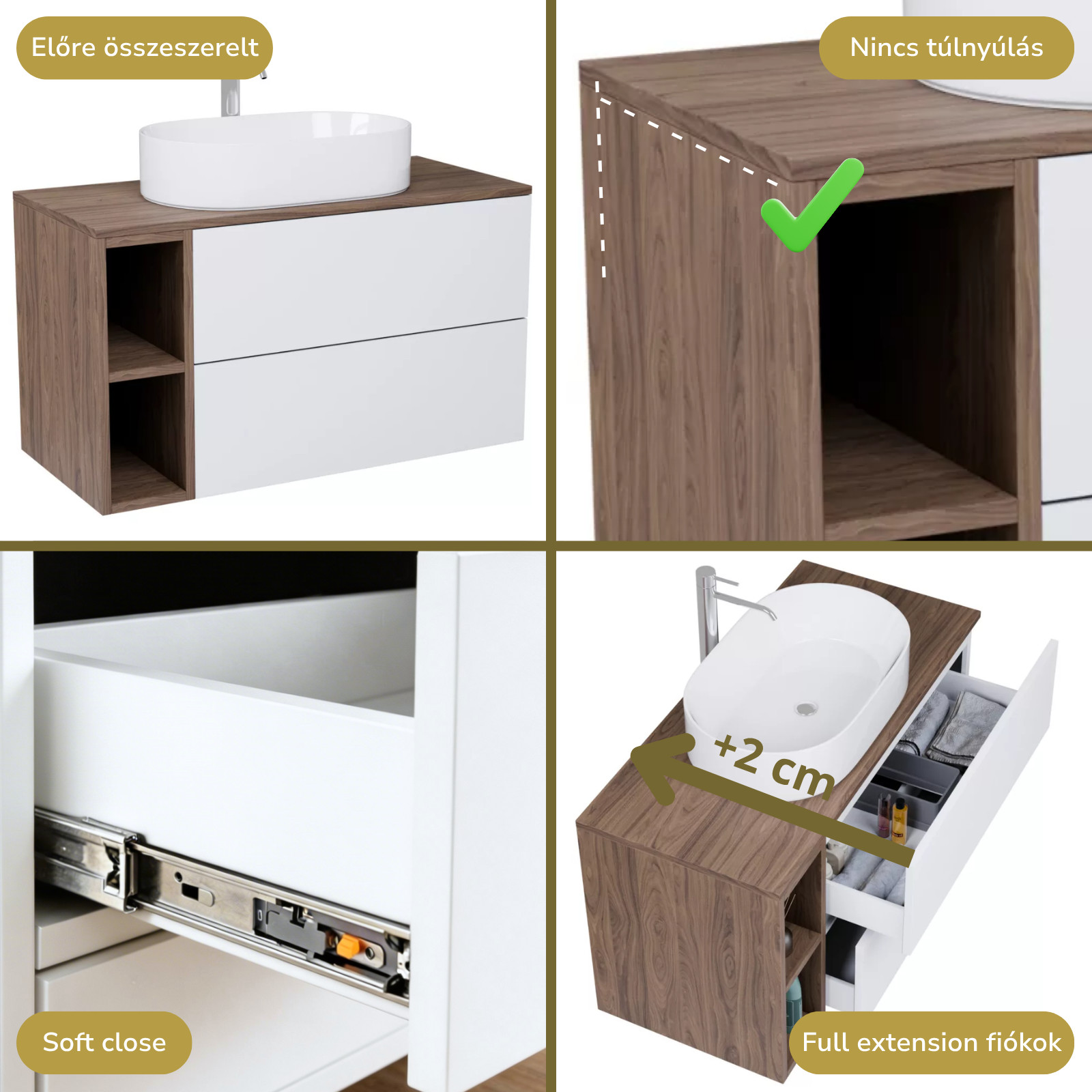A bútort összeszerelve szállítjuk ki, így Önnek csak a mosdót és a fiók frontot kell ráhelyeznie!