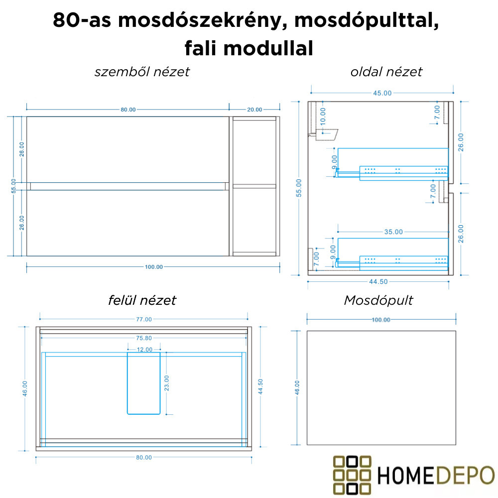 A bútor előre összerelt állapotban szállítjuk, így Önnek nincs más teendője már vele, csak fel kell rögzíteni a falra és fehelyezni a mosdót, illetve a fiók frontot.
