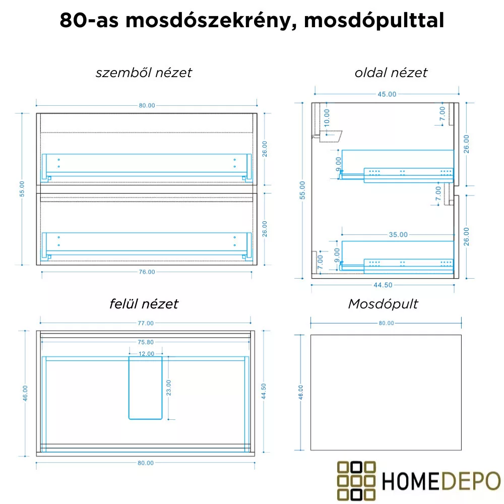 A bútort összeszerelve szállítjuk ki, így Önnek csak a mosdót és a fiók frontot kell ráhelyeznie!