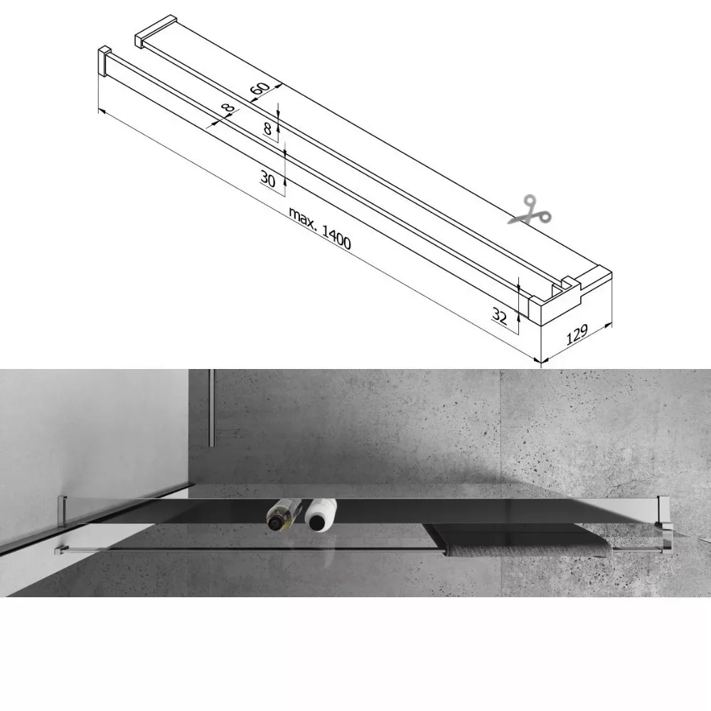 Az alumínium polc és törölközőtartó egy modern kiegészítő eleme a Walk-In zuhanyfalnak, amelyen nem csak designban hanem funkcionalitásában is kiemelkedő szereppel rendelkezik. A belső oldalon lehetősége elhelyezni a nap mint nap használt tusfürdőket, míg kivülről lehetőség adódik a törölközők szárítására és tárolására.