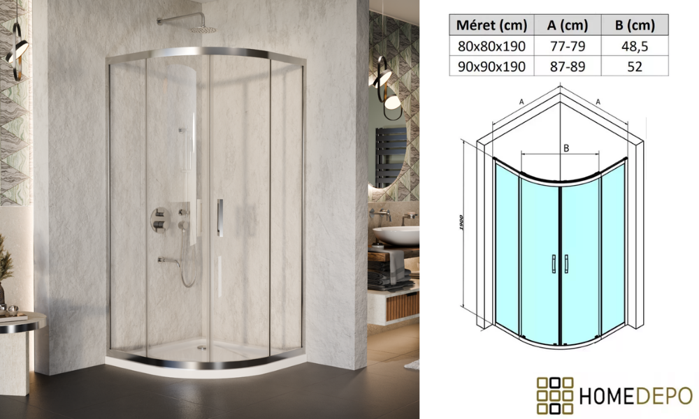 Napjainkban a praktikum mellett a fürdőszoba esztétikus megjelenése is fontos szempont. Az átlátszó üveges zuhanykabinok egyik előnye, hogy nem szűkitik össze a teret, elegáns, légies megjelenést kölcsönöznek a fürdőszobának. Az átlátszó üvegű zuhanykabinok a hagyományos és modern fürdőszobákban is megállják a helyüket. Az tolóajtónál az ajtónyílásból elvesznek az egymásra csúszó részek. Kisebb helyiségekben is kiváló megoldás lehet helytakarékosság szempontjából, mivel így nem kell arra figyeljen, hogy legyen elég hely az ajtó kinyitásához. A lekerekített ívű zuhanykabin az egyik legelterjedtebb forma hazánkban. Általában akkor alkalmazzák, ha kedvezőbb térkihasználást szeretnének a fürdőszobában, mert a lekerekített ív miatt több és kényelmesebb közlekedő felület maradhat. Saját márkás, Homedepo Elio, íves zuhanykabinunk, dupla görgőkkel érhető el, aminek köszönhetően jobban eloszlik a terhelés, egy ajtó 2 pont helyett 4 ponton gördül. Ez nagy mértékben biztosítja az egyenletesebb, simább működést és a hosszabb élettartamot. A görgők további fontos tulajdonságai közé sorolható, hogy Quick release systemmel ellátottak, aminek segítségével könnyedén fel- és leszerelhető a könnyedebb tisztítás érdekében.
