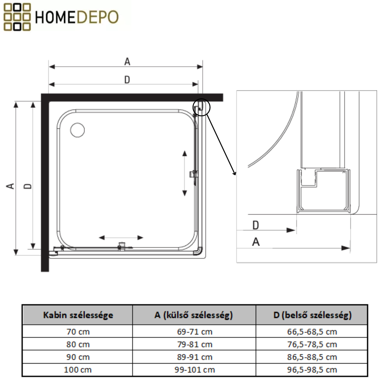 - Beépítési tartomány (küszöbbel): 99-101 cm x 79-81 cm