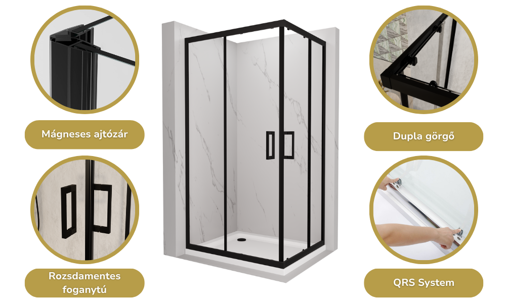 Az általunk legfontosabbnak vélt tulajdonságok szögletes zuhanykabinunknál:
