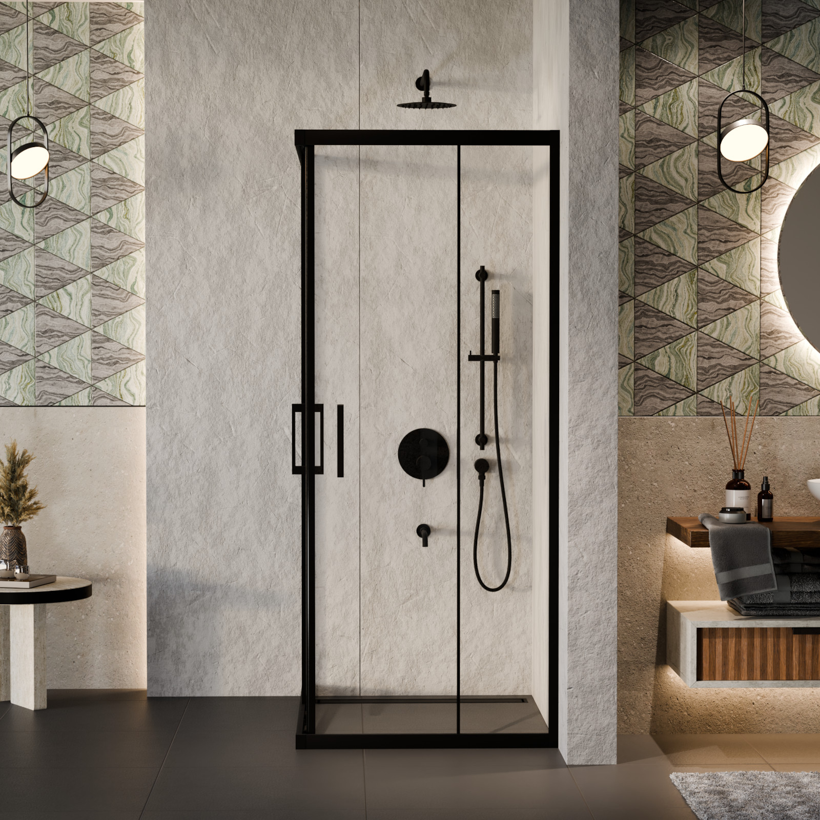 HD Elio 100x90 szögletes két tolóajtós zuhanykabin matt fekete színben
