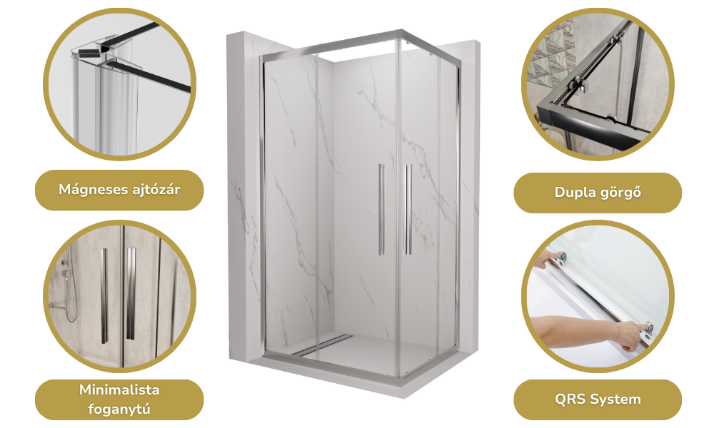 Az általunk legfontosabbnak vélt tulajdonságok szögletes zuhanykabinunknál: