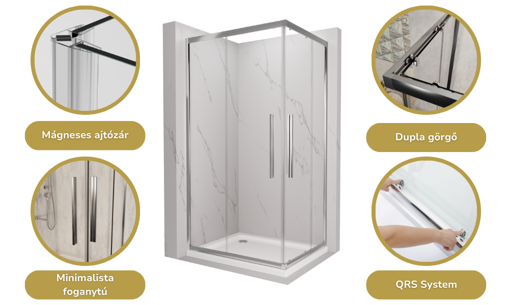 Az általunk legfontosabbnak vélt tulajdonságok szögletes zuhanykabinunknál: