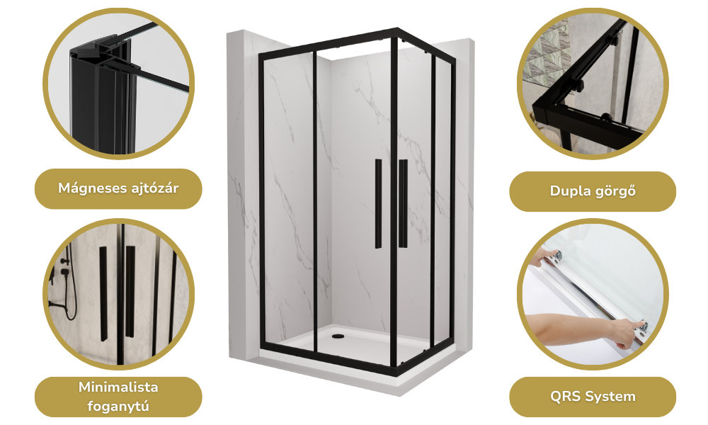 Az általunk legfontosabbnak vélt tulajdonságok szögletes zuhanykabinunknál: