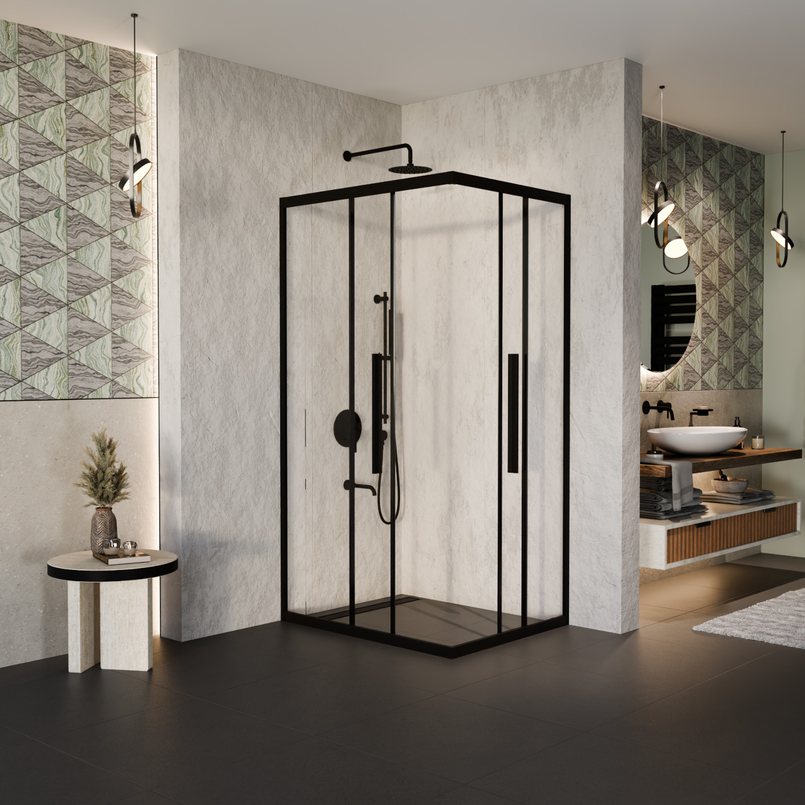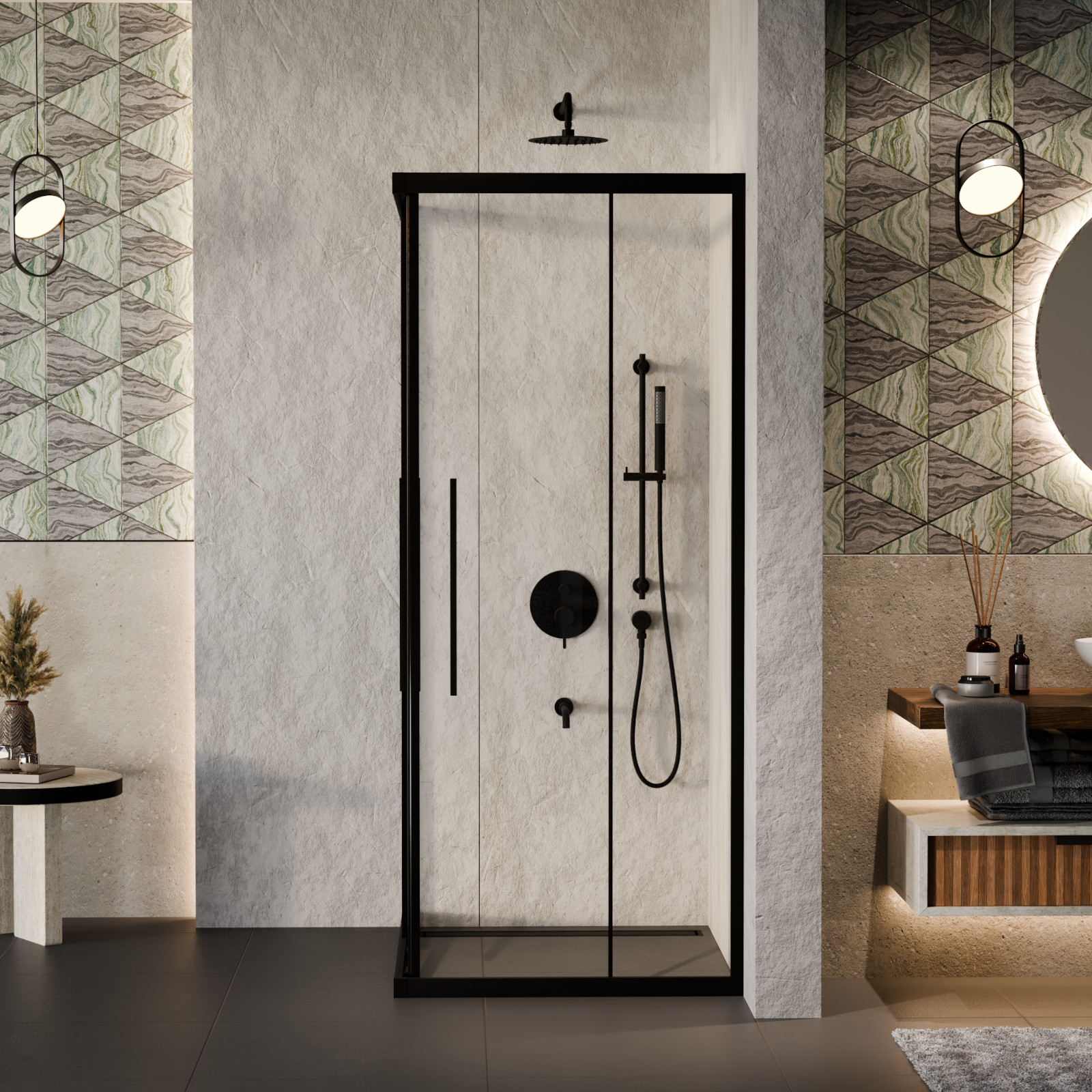 HD Elio+ 70x80 szögletes két tolóajtós zuhanykabin matt fekete színben