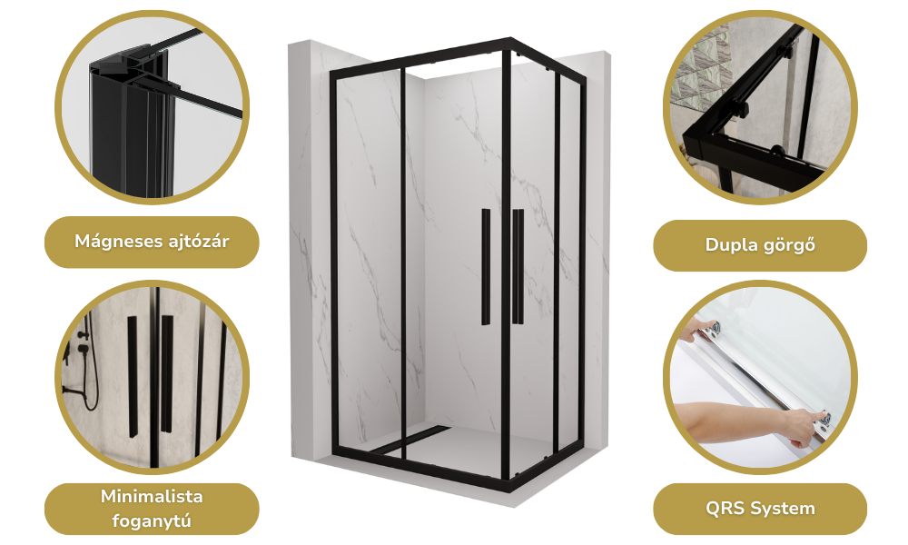 Az általunk legfontosabbnak vélt tulajdonságok szögletes zuhanykabinunknál: