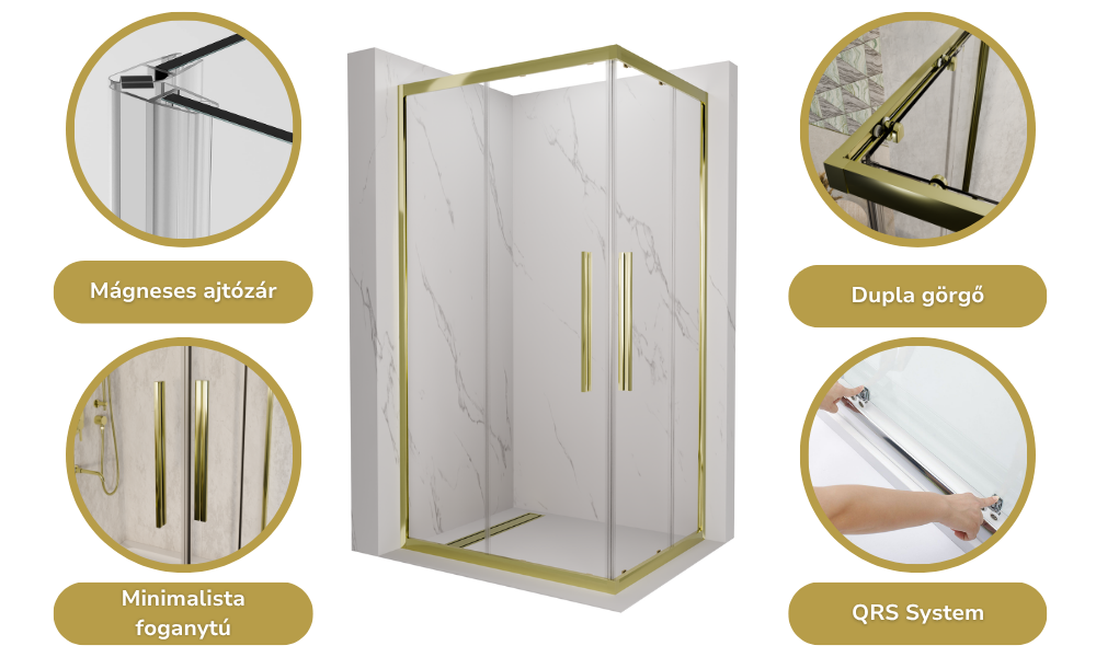 HD Elio+ Gold 70x80 szögletes két tolóajtós zuhanykabin arany színben