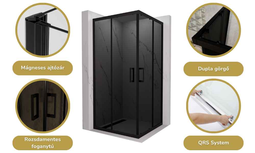 Az általunk legfontosabbnak vélt tulajdonságok szögletes zuhanykabinunknál: