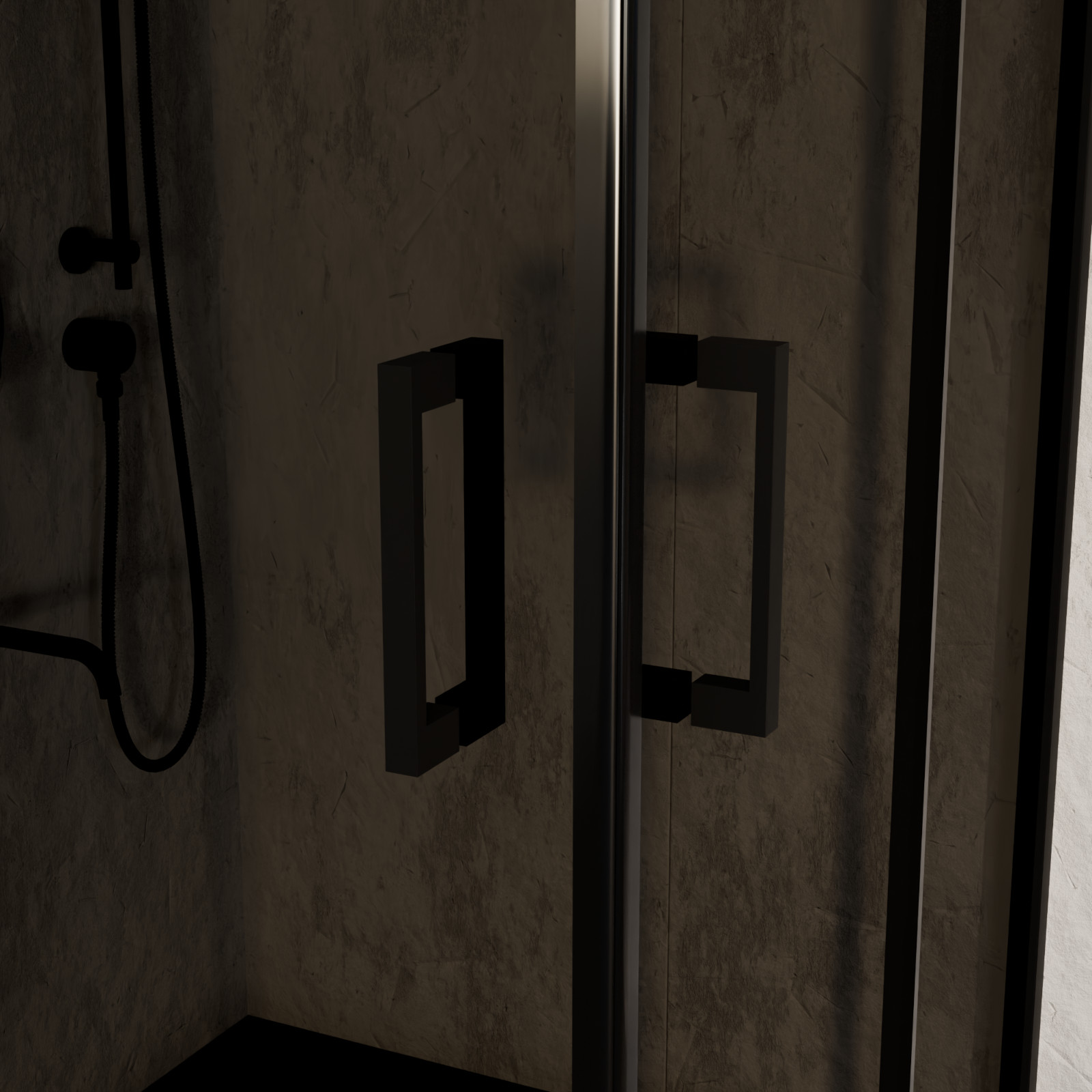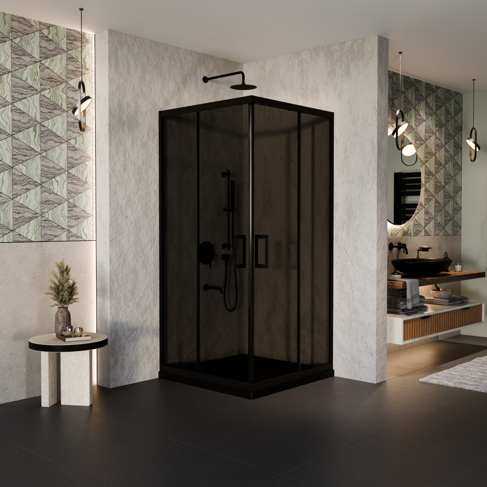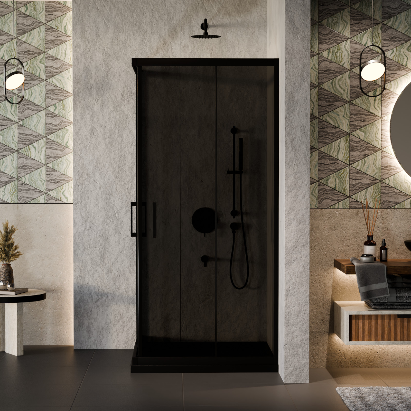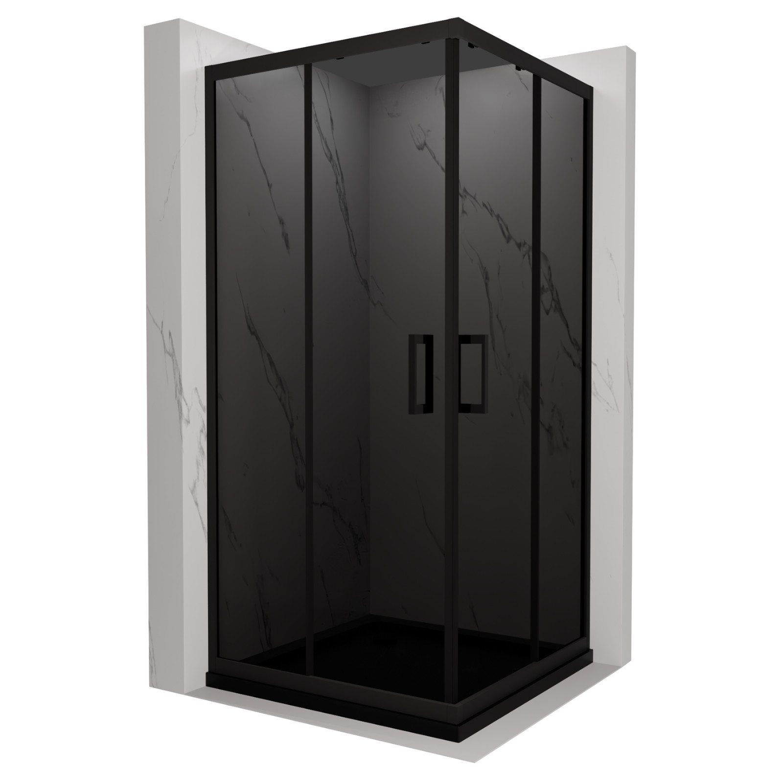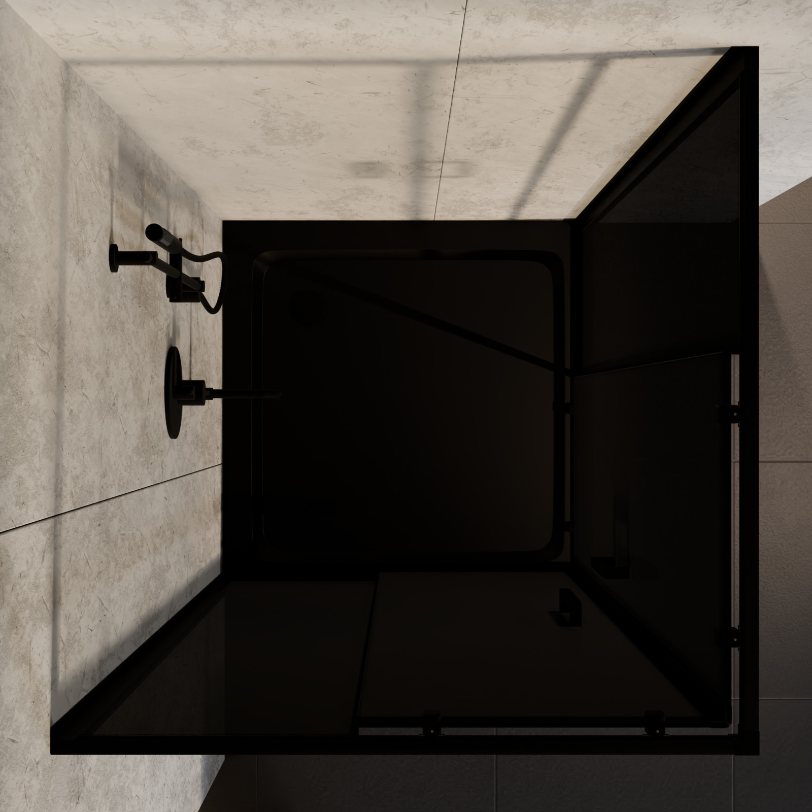 HD Fusion 80x80 szögletes két tolóajtós zuhanykabin fekete slim zuhanytálcával és króm szifonnal