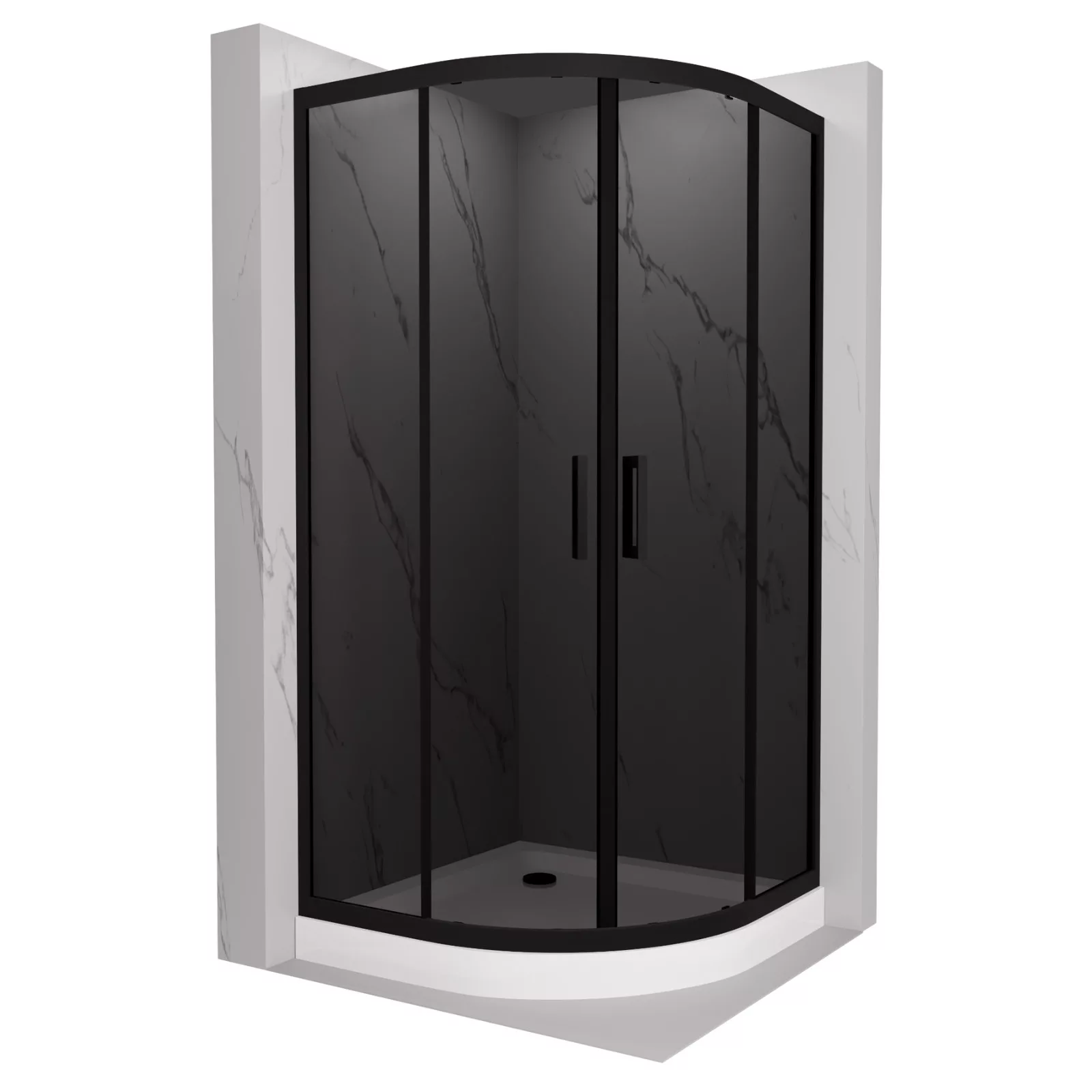 HD Fusion 90x90 íves két tolóajtós zuhanykabin fehér magas zuhanytálcával és króm szifonnal