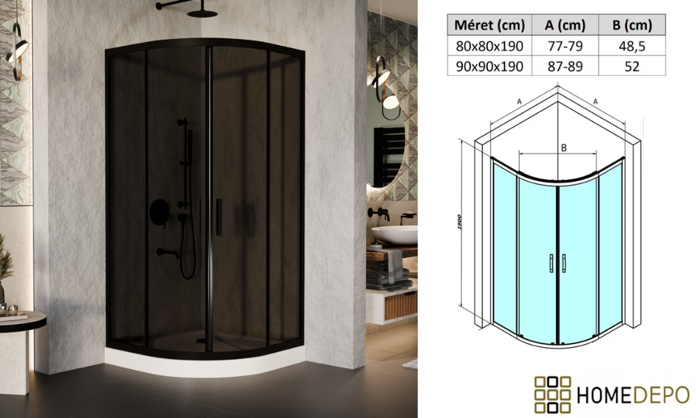 - Beépítési tartomány (küszöbbel): 87-89 cm x 87-89 cm