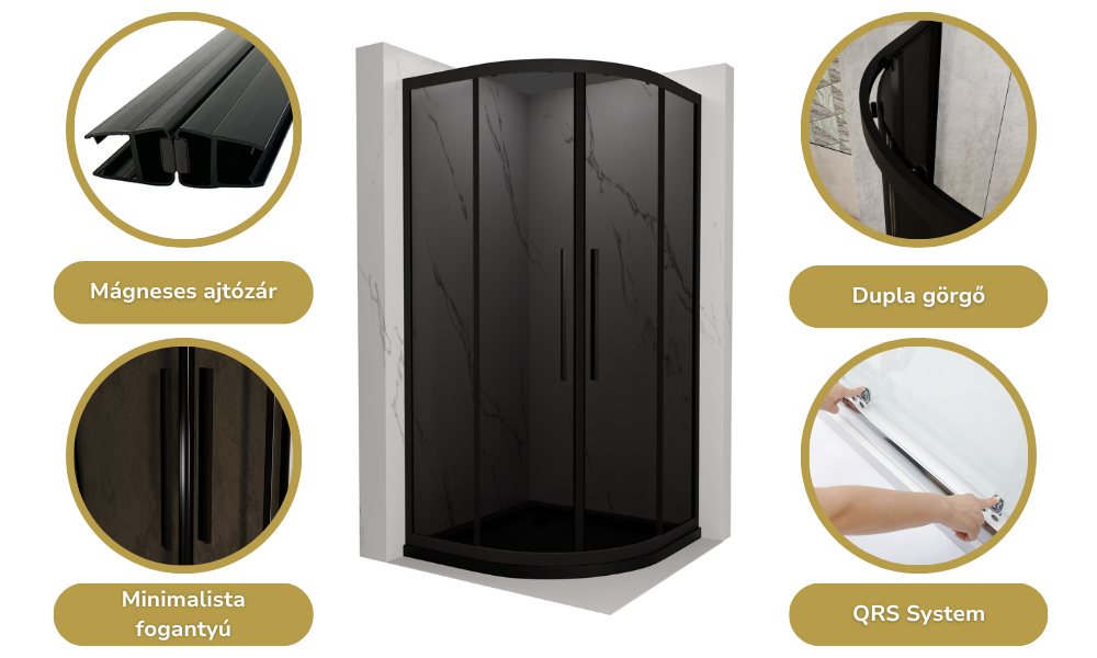 Az általunk legfontosabbnak vélt tulajdonságok íves zuhanykabinunknál: