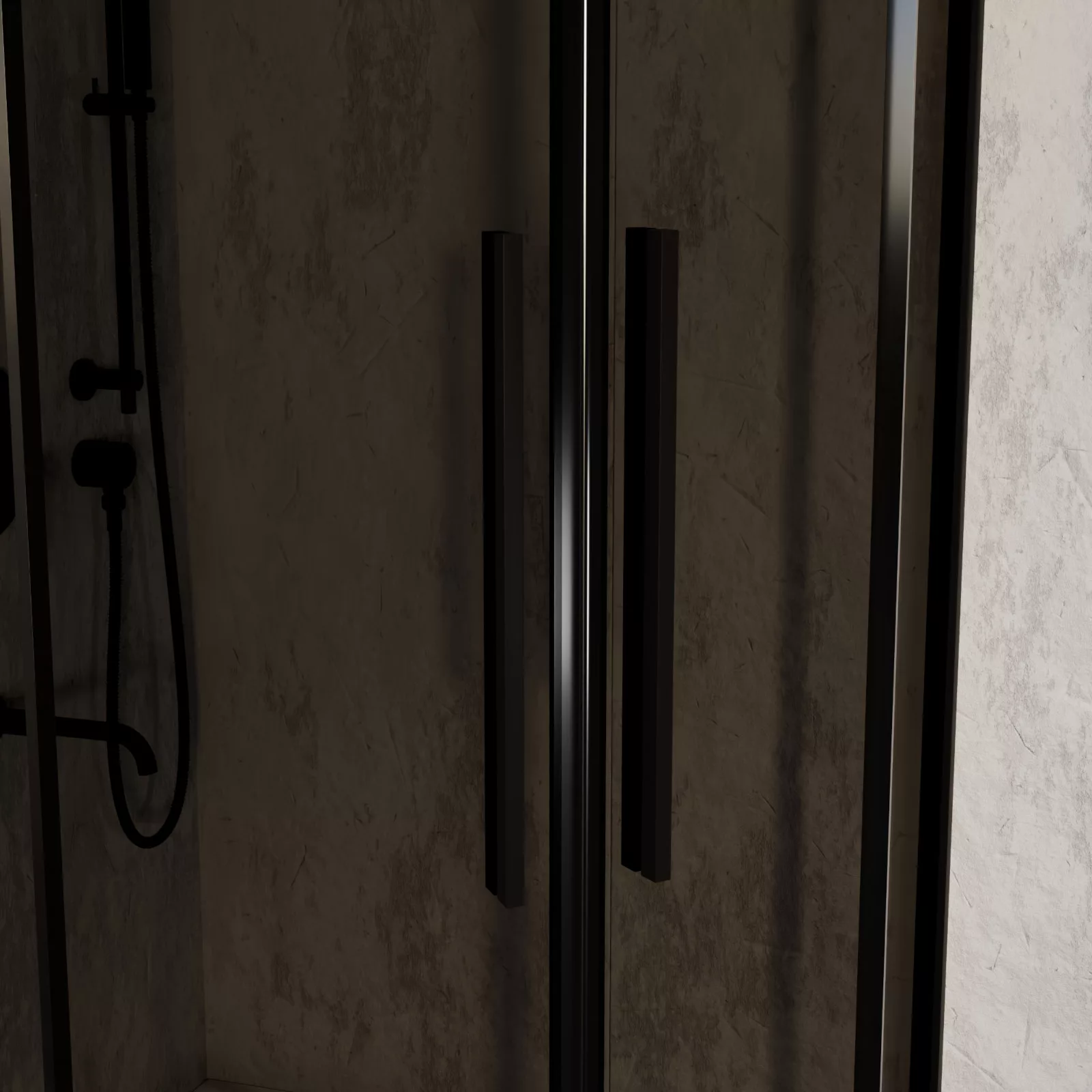 - Felszereltség: Fekete színű állítható alumínium profilok, polírozott minimalista fogantyú, vízzáró szilikon profilok, mágneses ajtózár