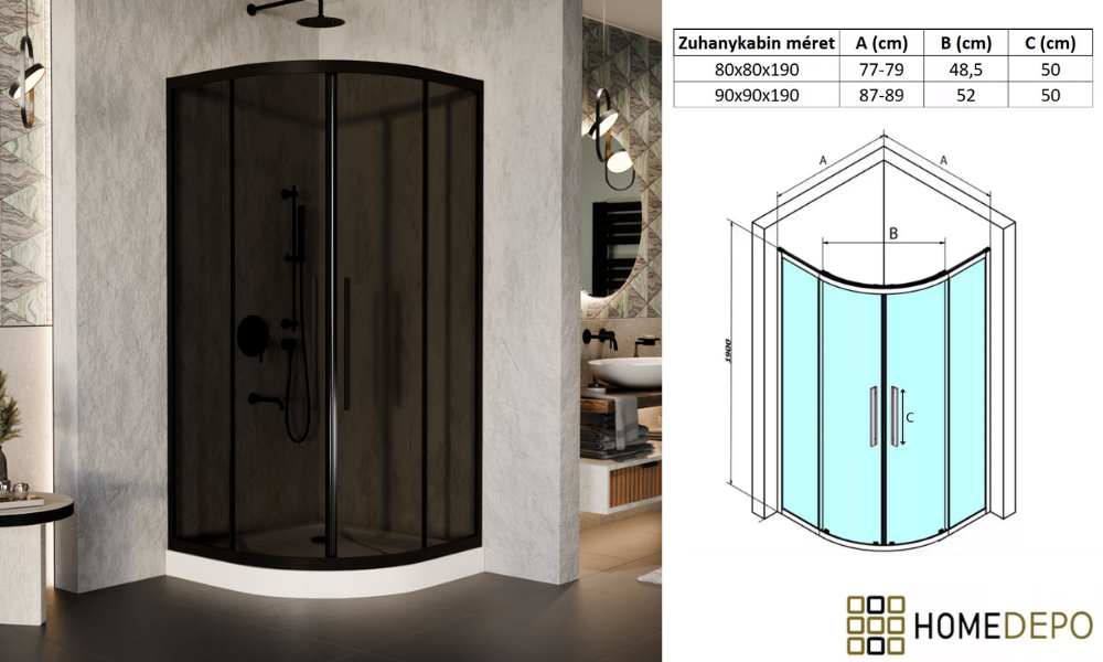 Napjainkban a praktikum mellett a fürdőszoba esztétikus megjelenése is fontos szempont. Az átlátszó üveges zuhanykabinok egyik előnye, hogy nem szűkitik össze a teret, elegáns, légies megjelenést kölcsönöznek a fürdőszobának. Az átlátszó üvegű zuhanykabinok a hagyományos és modern fürdőszobákban is megállják a helyüket. Az tolóajtónál az ajtónyílásból elvesznek az egymásra csúszó részek. Kisebb helyiségekben is kiváló megoldás lehet helytakarékosság szempontjából, mivel így nem kell arra figyeljen, hogy legyen elég hely az ajtó kinyitásához. A lekerekített ívű zuhanykabin az egyik legelterjedtebb forma hazánkban. Általában akkor alkalmazzák, ha kedvezőbb térkihasználást szeretnének a fürdőszobában, mert a lekerekített ív miatt több és kényelmesebb közlekedő felület maradhat. Saját márkás, Homedepo Fusion íves zuhanykabinunk, dupla görgőkkel érhető el, aminek köszönhetően jobban eloszlik a terhelés, egy ajtó 2 pont helyett 4 ponton gördül. Ez nagy mértékben biztosítja az egyenletesebb, simább működést és a hosszabb élettartamot. A görgők további fontos tulajdonságai közé sorolható, hogy Quick release systemmel ellátottak, aminek segítségével könnyedén fel- és leszerelhető a könnyedebb tisztítás érdekében.