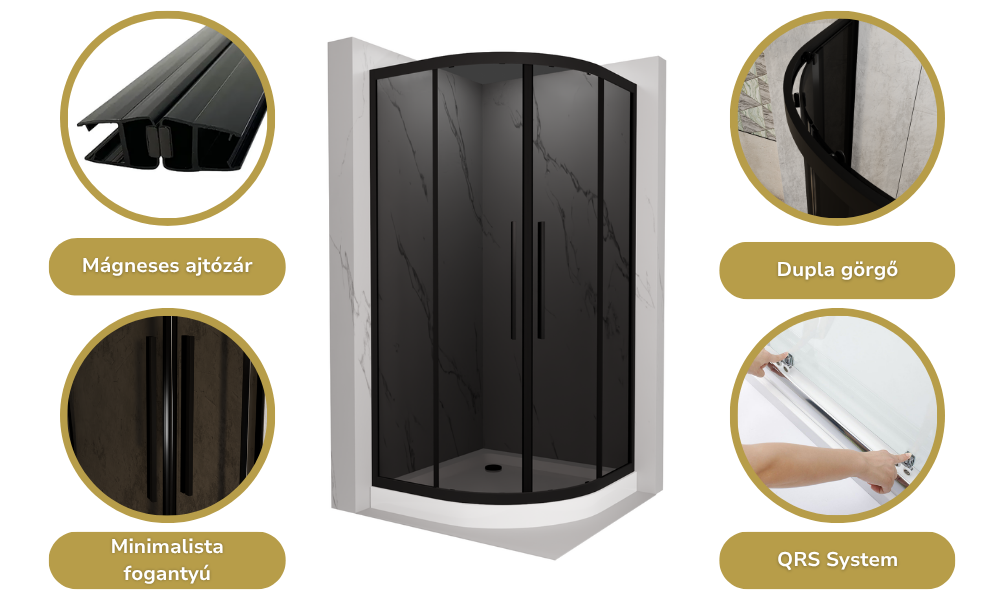 Az általunk legfontosabbnak vélt tulajdonságok íves zuhanykabinunknál: