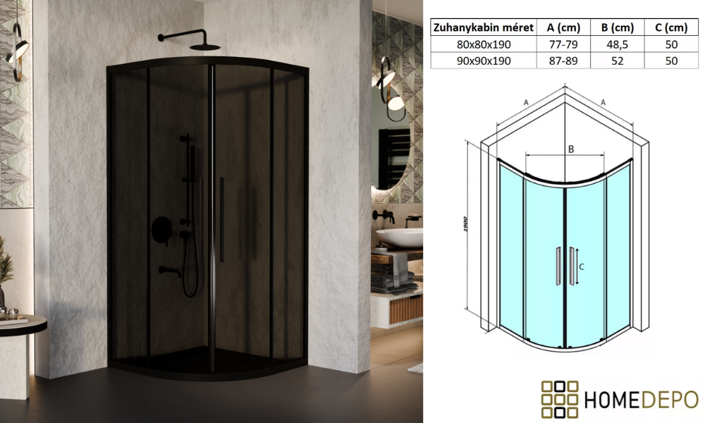 Napjainkban a praktikum mellett a fürdőszoba esztétikus megjelenése is fontos szempont. Az átlátszó üveges zuhanykabinok egyik előnye, hogy nem szűkitik össze a teret, elegáns, légies megjelenést kölcsönöznek a fürdőszobának. Az átlátszó üvegű zuhanykabinok a hagyományos és modern fürdőszobákban is megállják a helyüket. Az tolóajtónál az ajtónyílásból elvesznek az egymásra csúszó részek. Kisebb helyiségekben is kiváló megoldás lehet helytakarékosság szempontjából, mivel így nem kell arra figyeljen, hogy legyen elég hely az ajtó kinyitásához. A lekerekített ívű zuhanykabin az egyik legelterjedtebb forma hazánkban. Általában akkor alkalmazzák, ha kedvezőbb térkihasználást szeretnének a fürdőszobában, mert a lekerekített ív miatt több és kényelmesebb közlekedő felület maradhat. Saját márkás, Homedepo Fusion, íves zuhanykabinunk, dupla görgőkkel érhető el, aminek köszönhetően jobban eloszlik a terhelés, egy ajtó 2 pont helyett 4 ponton gördül. Ez nagy mértékben biztosítja az egyenletesebb, simább működést és a hosszabb élettartamot. A görgők további fontos tulajdonságai közé sorolható, hogy Quick release systemmel ellátottak, aminek segítségével könnyedén fel- és leszerelhető a könnyedebb tisztítás érdekében.