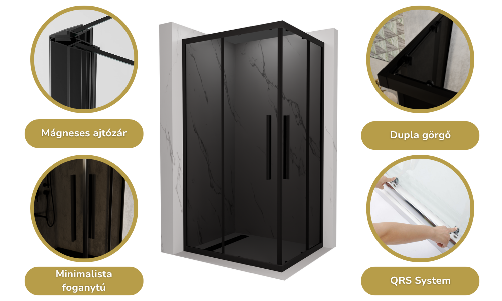 Az általunk legfontosabbnak vélt tulajdonságok szögletes zuhanykabinunknál: